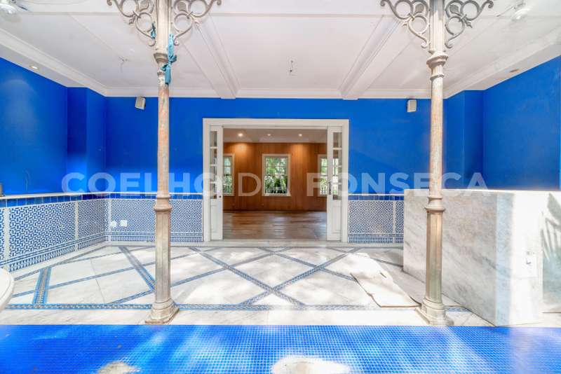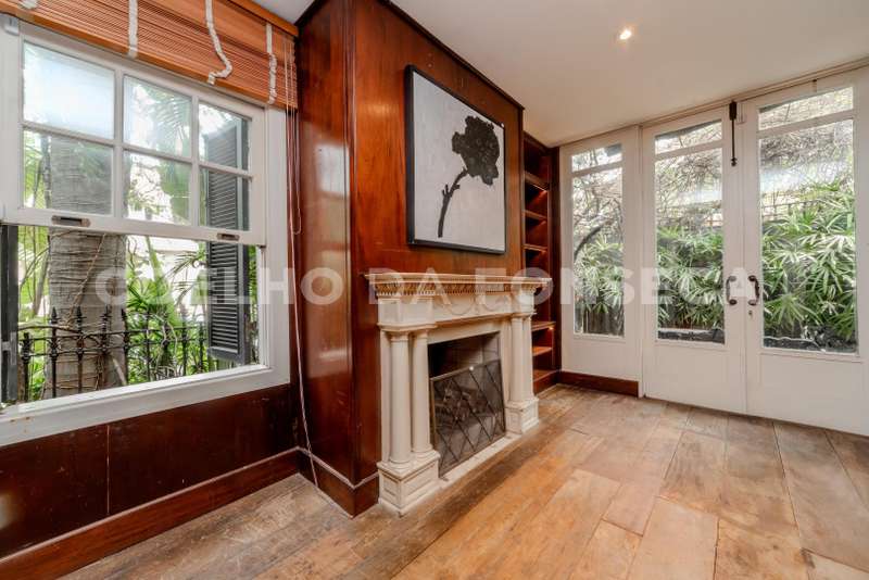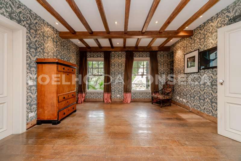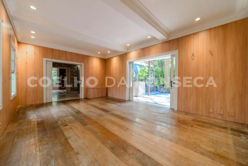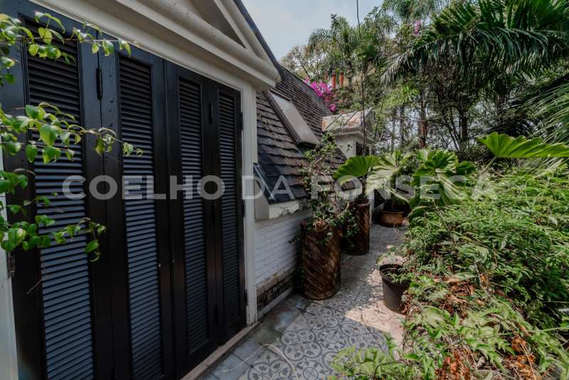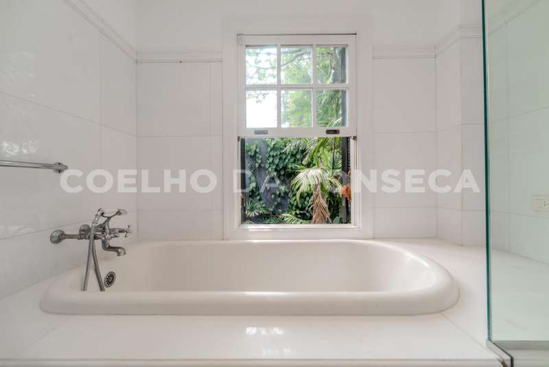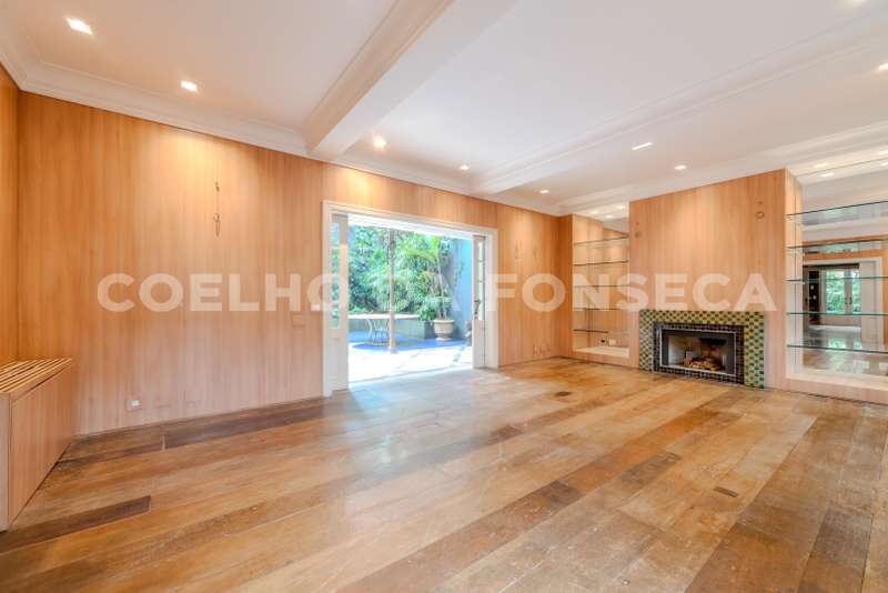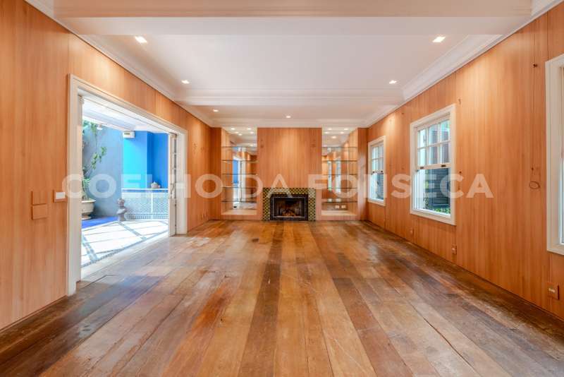- no Térreo, um charmosíssimo living com lareira e a sala de jantar para dois ambientes que dão acesso para o jardim lateral. Ainda, a varanda vasta para o jardim maior, com uma suntuosa palmeira imperial enquadrada pelas colunas inglesas.