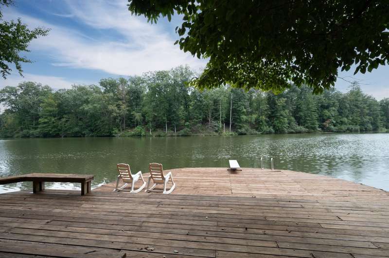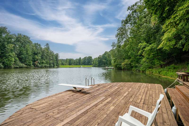 This stunning lakefront home, nestled in a highly sought-after subdivision, offers the perfect blend of comfort and elegance. With it's spacious floorplan and many outdoor amenities, it's ideal for hosting guests. Step onto the covered porch and take in breathtaking water views, or retreat to the spacious primary bedroom with an ensuite bath. Relax in front of the gas burning coal fireplace in the living room on those cold winter nights. The sunroom overlooks the massive deck, while the expansive kitchen features an eat-at island, breakfast nook, and convenient wet bar. Hot water heater and dishwasher just over a year old, clothes washer and dryer new. The finished lower level features authentic Saltillo Mexican tiles throughout most of it and features a walkout access onto the enormous 50 foot covered patio. Separate double door entry workshop on lower level with hot/cold laundry type sink. Follow the winding path to the dock complete with diving board, where you'll find a peaceful gazebo for relaxing by the water, as well as a quaint garden shed perfect for storing yard tools. Enjoy the firepit surrounded by big leaf magnolias for ambiance. The circular driveway ensures easy entry and exit, while lush landscaping and ornamental trees create charming curb appeal. With a new roof installed in 2023, this home is move-in ready. Sellers offering a one year home warranty from 2-10 for added peace of mind. Don't miss the opportunity to make this lakefront gem with acreage yours!