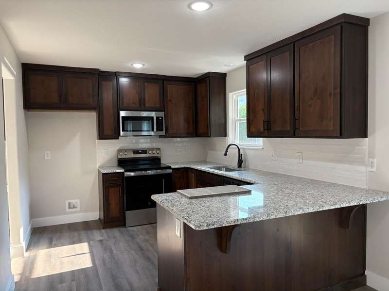 WOW! COMPLETELY REMODELED in 2025, this 4-bedroom, 3-bath beauty blends high-end style with everyday comfort. Step inside to a FULLY RENOVATED interior where every detail is NEW from the flooring underfoot to the cabinets, doors, lighting, ceiling fans, and showers - EVERYTHING! A neutral color palette, rich dark cabinetry, and custom comfort-height granite counters create a fresh, timeless look. The open living area boasts grand vaulted ceilings, seamlessly connected to a stylish kitchen with a crisp white tiled backsplash, sleek pulldown faucet, and custom finishes that elevate the space.Step out back to a BRAND NEW DECK and stairs overlooking the yard, complete with privacy fencing and a graceful weeping willow perfect for relaxing or entertaining.The walk-out basement expands your living space with a large multipurpose room, oversized bedroom, and full bathroom. A sliding glass door and large window fill the space with natural light, while the unfinished area offers abundant storage or potential for a nonconforming room.This home is truly MOVE-IN READY, offering thoughtful upgrades and a welcoming design you'll love coming home to.This house is located just minutes from convenience - including the Aldi that is being built in Ozark!