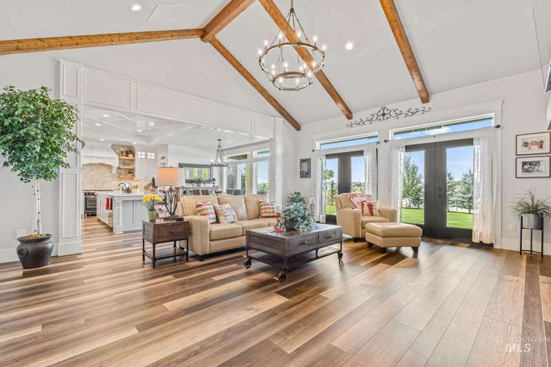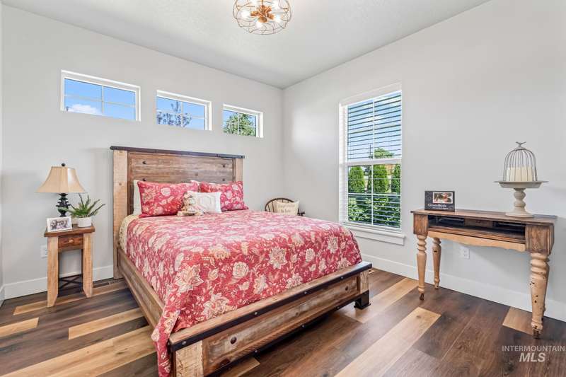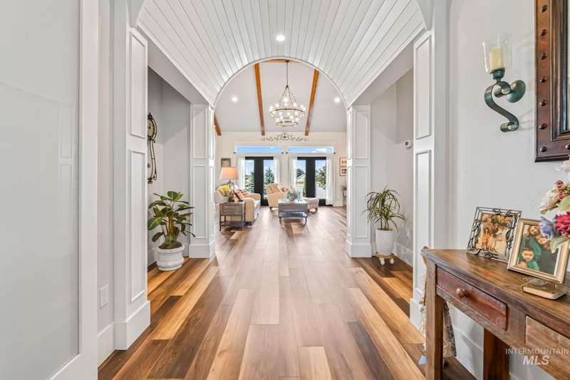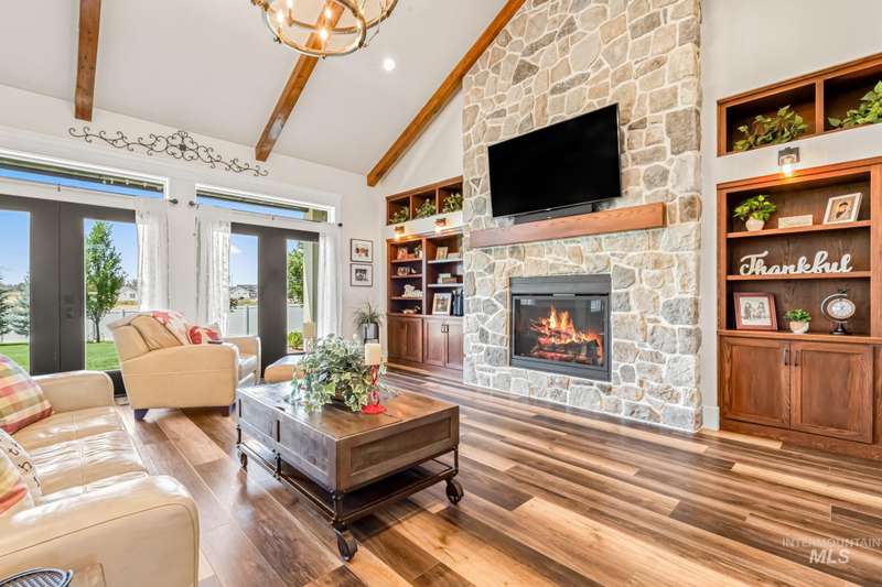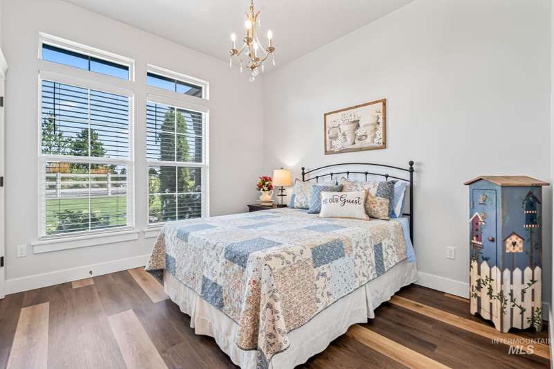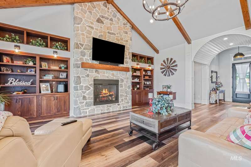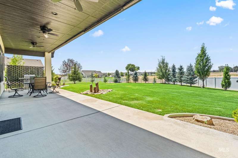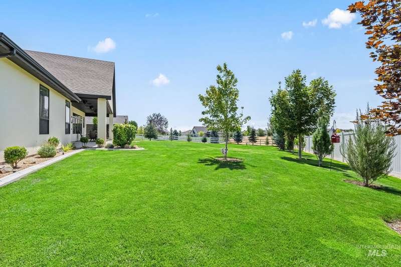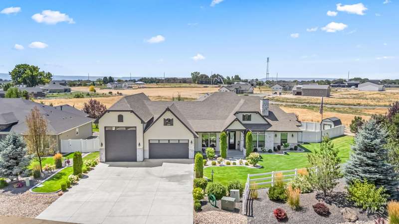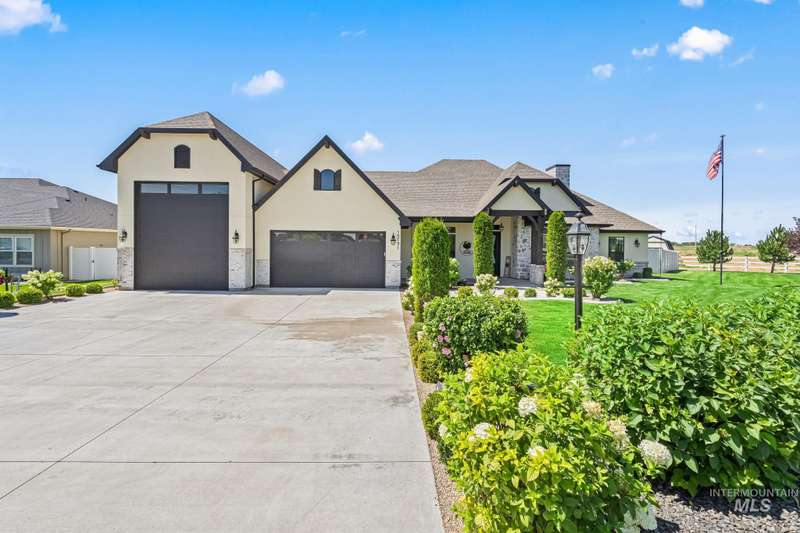 Immaculate 3 bedroom, 2.5 bath single level home with an office and RV garage. Featured previously in the Parade of Homes, this house is stunning! Boasting tall and vaulted ceilings with custom trim work throughout. As you step inside you will be welcomed with an attractive arched style ceiling in the entry. Open floorplan with a spacious great room featuring a fireplace with floor to ceiling rock surround and built in bookcases and shelving. Kitchen highlighted by high end Bertazzoni appliances and a massive island. Master suite offers direct patio access, dual vanities, soaker tub, huge walk-in shower with dual shower heads and a walk-in closet. Engineered hardwood flooring and decorative lighting throughout the home. Relax on the covered back patio and enjoy the magnificent sunsets. Set on a large corner lot over half an acre. Conveniently located right across from the Purple Sage Golf Course!