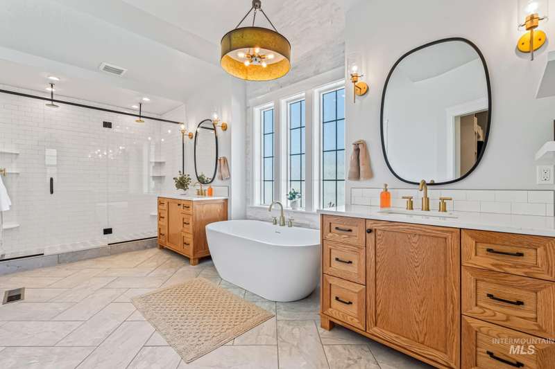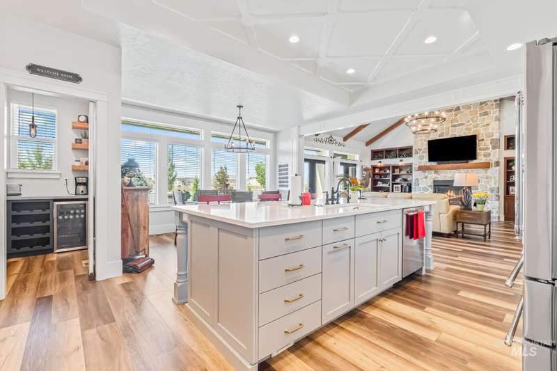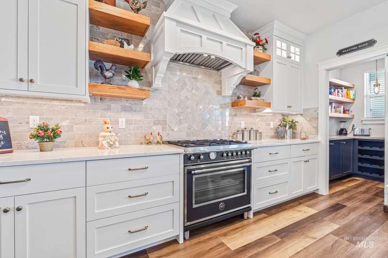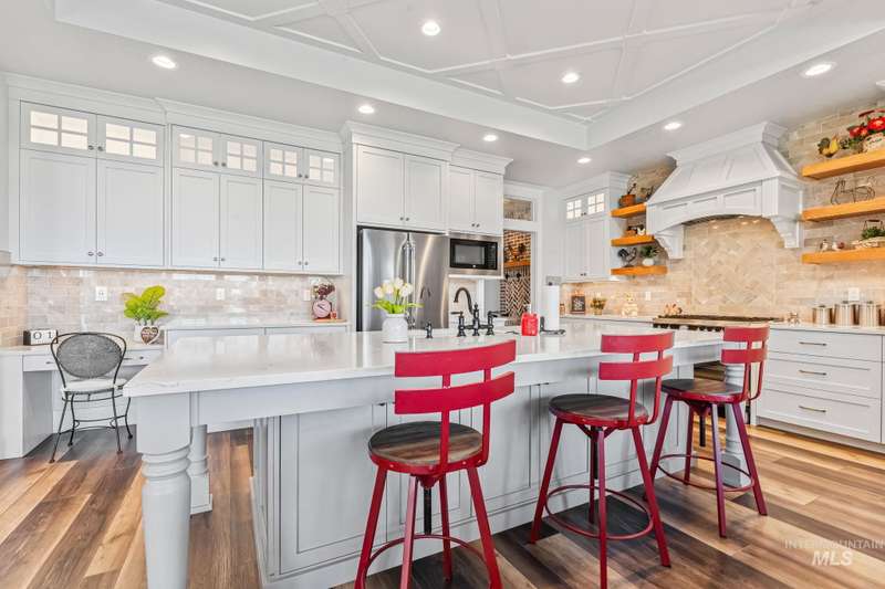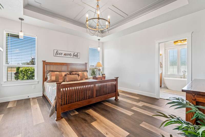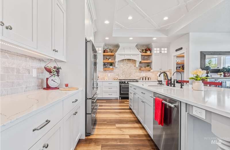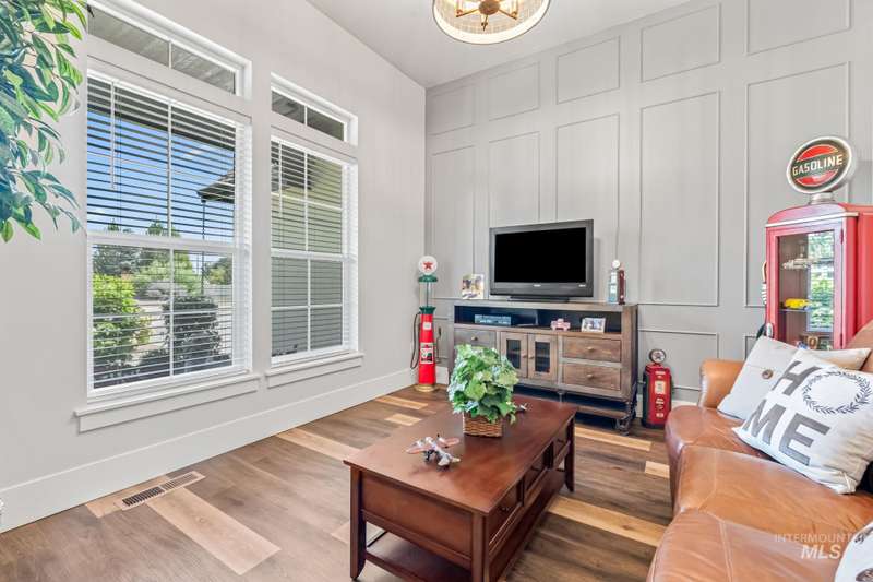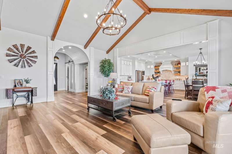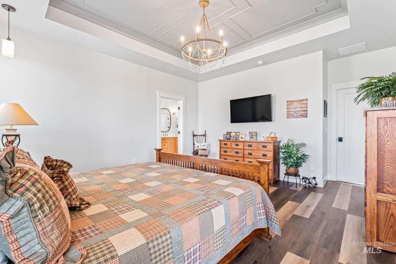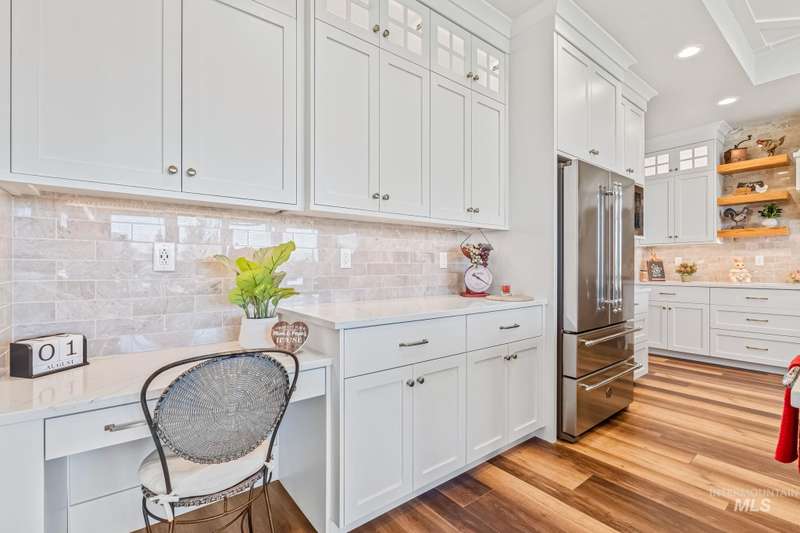 Immaculate 3 bedroom, 2.5 bath single level home with an office and RV garage. Featured previously in the Parade of Homes, this house is stunning! Boasting tall and vaulted ceilings with custom trim work throughout. As you step inside you will be welcomed with an attractive arched style ceiling in the entry. Open floorplan with a spacious great room featuring a fireplace with floor to ceiling rock surround and built in bookcases and shelving. Kitchen highlighted by high end Bertazzoni appliances and a massive island. Master suite offers direct patio access, dual vanities, soaker tub, huge walk-in shower with dual shower heads and a walk-in closet. Engineered hardwood flooring and decorative lighting throughout the home. Relax on the covered back patio and enjoy the magnificent sunsets. Set on a large corner lot over half an acre. Conveniently located right across from the Purple Sage Golf Course!