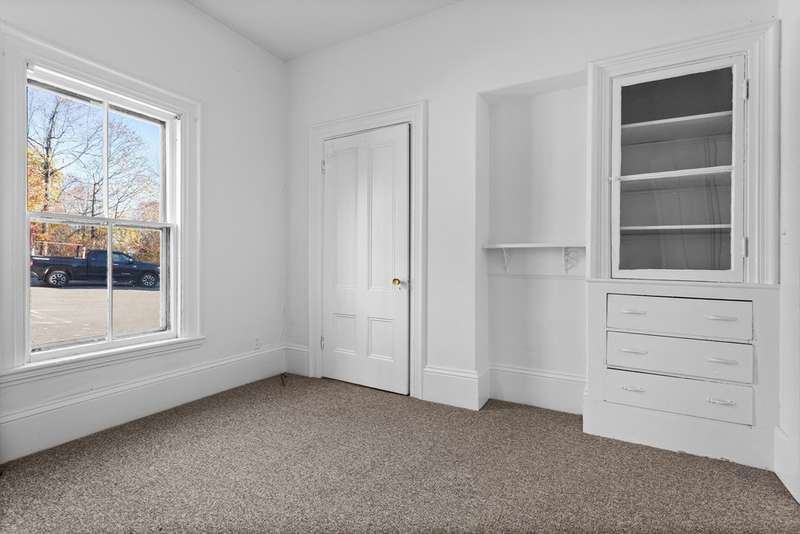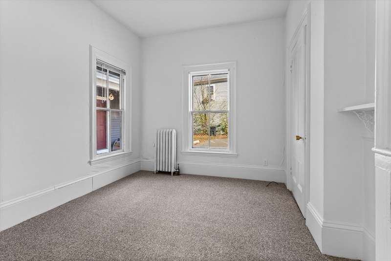 Attn Investors or Homebuyers! Vacant ground-floor one-level sunny Condominium in a two-family located adjacent to historic Exchange Hall. Two assigned side-by-side parking spaces with direct access to front entry with a covered patio. Enjoy a carpeted mudroom. There is a 2nd entrance featuring a screen porch overlooking Main St. Floor plan consists of 2 Bedrooms,1 Bath, an Eat-in Kitchen with walk-in Pantry with Laundry. The Living Room & Parlor are spacious and sunny. New carpet in BR's & Living Rm (hardwood under). Nice yard-exclusive use. Systems: 100-amp electric (2025) & gas-fired boiler (2016), gas H2O tank, roof (2014), entrance roof (2024). Bulkhead (Nov 2024). Freshly painted interior. Fridge, stove, dishwasher, washer/dryer included. New window glass, storms & screens (2025). New concrete floor in Basement w storage & separate utilities. Town Water/Sewer. Perfect location - MBTA across St! Grocery, shops, schools nearby.
