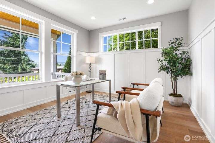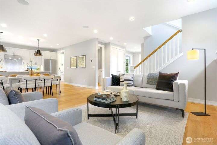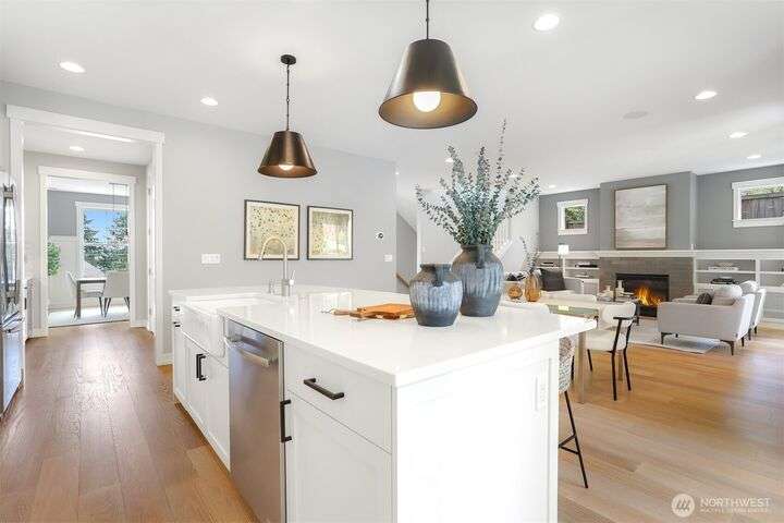 Fabulous modern Craftsman built with style and attention to detail! Bright, open and spacious with soothing natural light throughout. Entertain a crowd in the Chef’s kitchen with large island, prep space and desirable butler pantry. The generous living space offers a wall of windows looking out to the private back yard sanctuary and cozy heated covered patio. Soothing primary with luxurious en-suite creates a spa-like retreat. Beautifully maintained and finished, plus convenient with a dedicated office, AC, smart-home automation, outdoor hot water, and spacious garage. It’s a short walk to coveted NE schools and Dahl Field, and just minutes to UW, U Village, great markets, cafes, parks, and Light Rail. Such a wonderful place to call home!