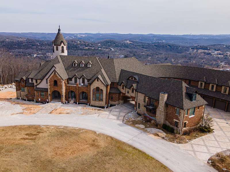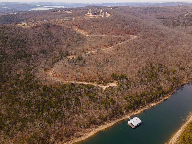 Spectacular Gated Estate located on 104 Lakefront Acres with over 1,700 ft. of shoreline overlooking Table Rock Lake. The Main home features 14 bedrooms, 15 full bathrooms, 3 - 1/2 bathrooms, 4 men service bathrooms with multiple stalls and 4 women service bathrooms with multiple stalls & an 8-car garage. This breathtaking 33,048 sq ft Smart home was thoughtfully designed to suit any buyer. Quality and commercial-grade construction including steel framing, sprayed foam, 2 septics, HVAC - heating and cooling mini splits, and wiring for security/AV. Sophisticated and custom details throughout including wood beams, barrel ceilings, wood casement windows and doors, 8 vented gas fireplaces, copper guttering, and elevator shaft. 30,000-gallon owned propane tank. Multiple entertaining areas indoor and outdoor with resort-style beach entry infinity pool and expansive kids playground. Property includes 5 bedroom, 6 bathroom, 3 car garage guest annex, separate RV/Boat storage building with 3,600 sq ft living area and private 3-stall boat dock with solar power and swim platform. *Construction is not completed, and property is sold ''AS IS''. (Finished/unfinished square footage is approximate. All buyers/buyers' agents to do own due diligence.) Over 60,000 sq ft under roof. Close to Completion.