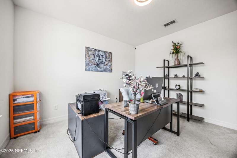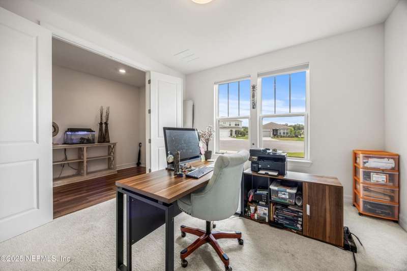 Welcome home to this beautiful home located in Grand Oaks in St. Johns, Florida. This like new home features 4-bedrooms, 2.5-bathrooms in an open concept with an office, casual dining area and a loft. The kitchen is nicely equipped, with white cabinets, stainless steel appliances, quartz countertops, and a large island with seating. It seamlessly connects to the casual dining area and family room, creating the perfect space for entertaining and cozy family gatherings. The casual dining room is ideal for both daily meals and formal settings. Sliding glass doors open to a private covered lanai, offering views of the preserve and access to the large back yard. The private office provides an ideal space to work from home or relax with a good book. The primary suite boasts a walk-in closet and a spa-inspired bathroom with dual vanities a walk-in shower and a soaker tub. Upstairs you'll find a loft and three additional bedrooms for added comfortable accommodations. As a resident of Grand Oaks, you'll enjoy resort-style amenities and easy access to shopping, entertainment, historic St Augustine and top-rated schools. Don't miss the chance to make this exceptional property your new home!