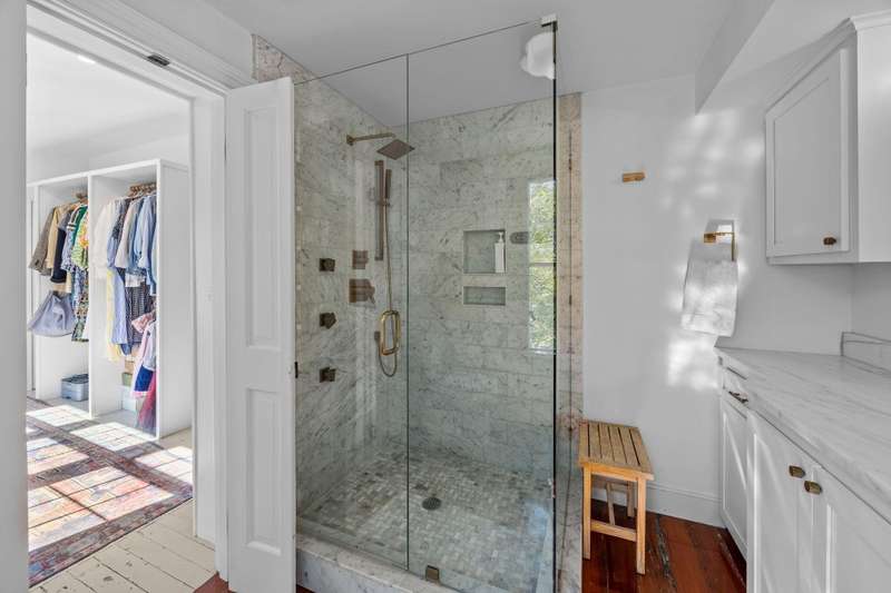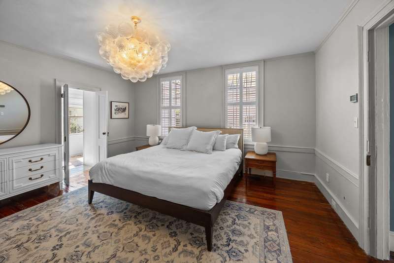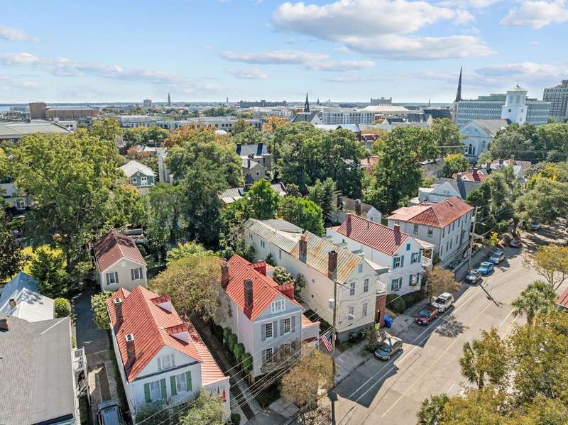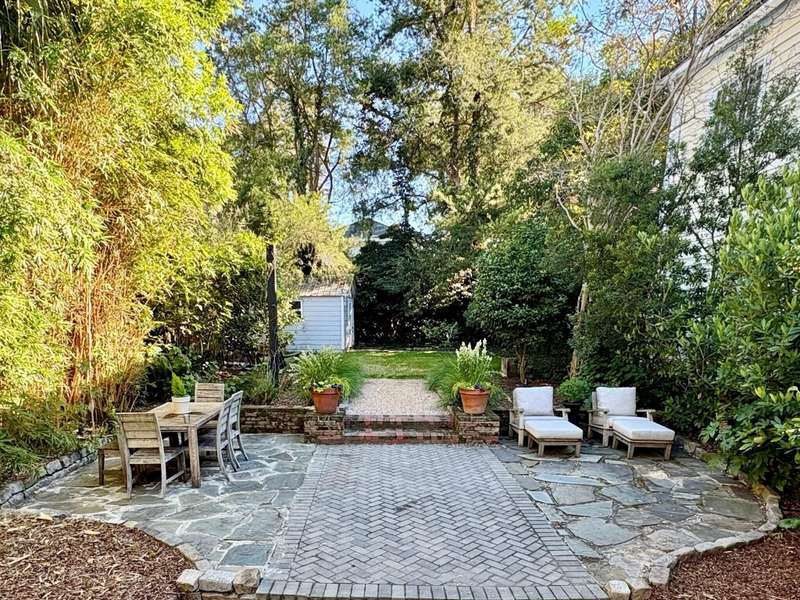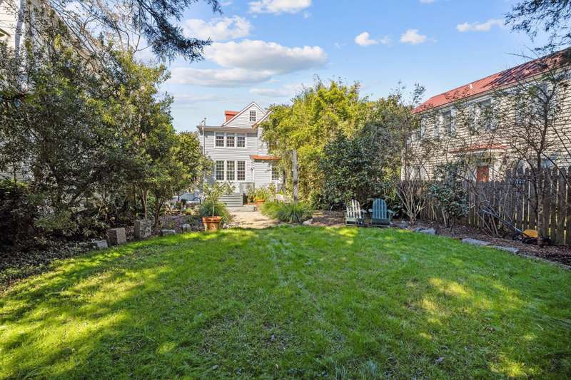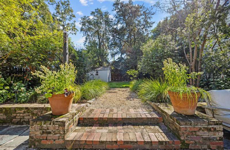 This fully renovated historic Charleston Single on high ground and a large, private lot perfectly blends timeless charm, privacy, and modern luxury. Located in the Garden District, it offers 4 bedrooms, 2.5 baths, 4 fireplaces, high ceilings, and a light-filled eat-in kitchen with marble counters, artisan tile, and modern appliances. The primary suite includes generous closet space, a renovated bath, and laundry. Iconic details such as a red terne metal roof, stately Charleston piazza, heart pine floors, wainscoting, and Greek Revival mantles showcase the home's craftsmanship, while modern updates ensure comfort and convenience.Enjoy one of downtown's most spacious and private yards, with off-street parking, lush landscaping and room for a pool. Just a short walk to King Street's dining, shops, and galleries, this residence offers historic character, modern comfort, and downtown ease in one of Charleston's finest locations.