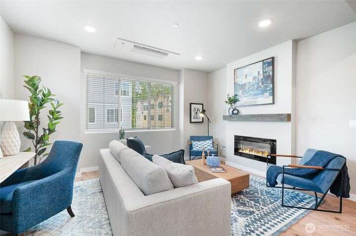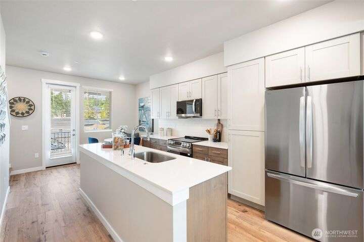 Welcome to Aberdour Landing, a new community in Bothell showcasing beautifully designed homes with upscale finishes. This home offers 2 bedrooms with private in-suite bathrooms, a dedicated office/den, cozy fireplace, and extra garage storage. Enjoy thoughtful features like balcony heaters, stair lighting, and Ring doorbells for modern convenience. The spacious kitchen is perfect for gatherings, featuring a large island, quartz countertops, and a built-in seating nook. Discover comfort and style at Aberdour Landing. Lot 21 Includes appliance package, Finished in the Classic Color Scheme. Community is subject to a site registration policy.