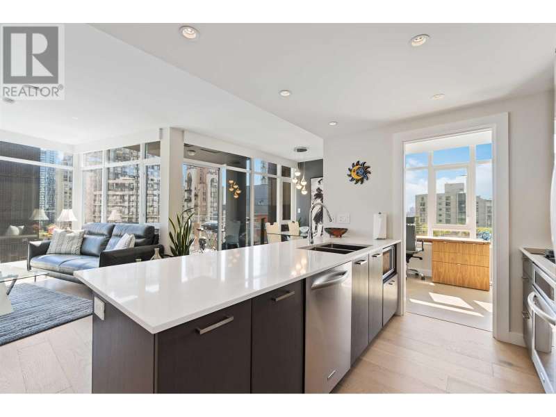 Welcome to The Mark, one of Yaletown´s most sought-after addresses! This spacious 1-bedroom + Den, 1-bath home on the 12th floor offers bright, open-concept living with air conditioning for year-round comfort. Tastefully updated with new hardwood flooring, updated appliances & custom millwork throughout. Enjoy sleek modern finishes, floor-to-ceiling windows, and a gourmet kitchen perfect for entertaining. The building features over 10,000 sqft of top-tier amenities, including a 24/7 concierge, fitness centre, outdoor pool, and rooftop lounge. This home offers excellent investment potential in a prime downtown location, just steps from the seawall, restaurants, and transit. Text now to book your private appointment! (id:58403)