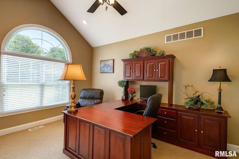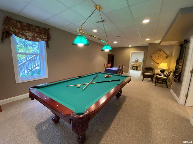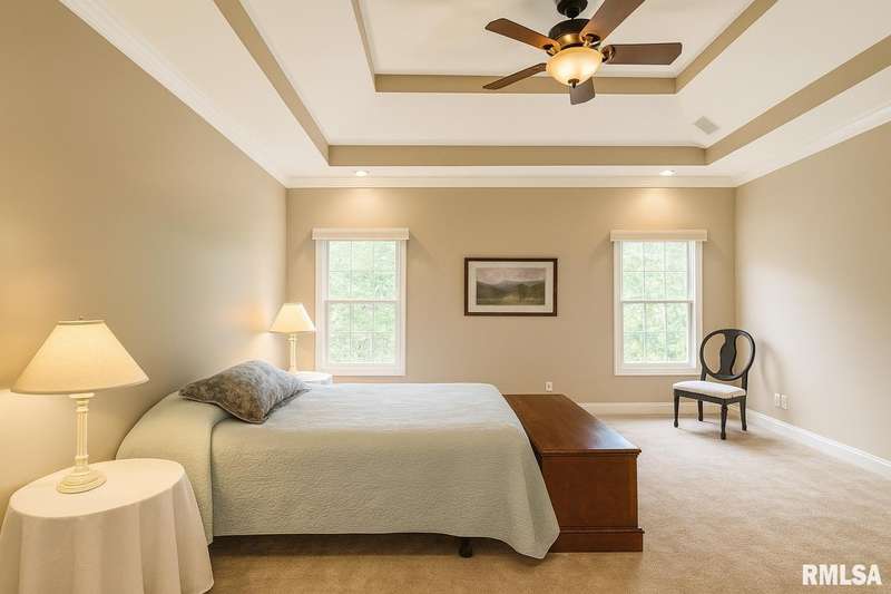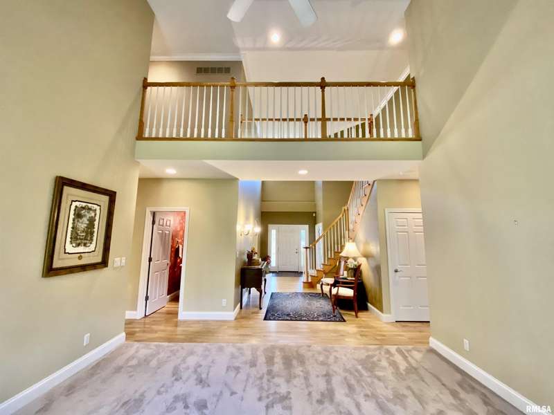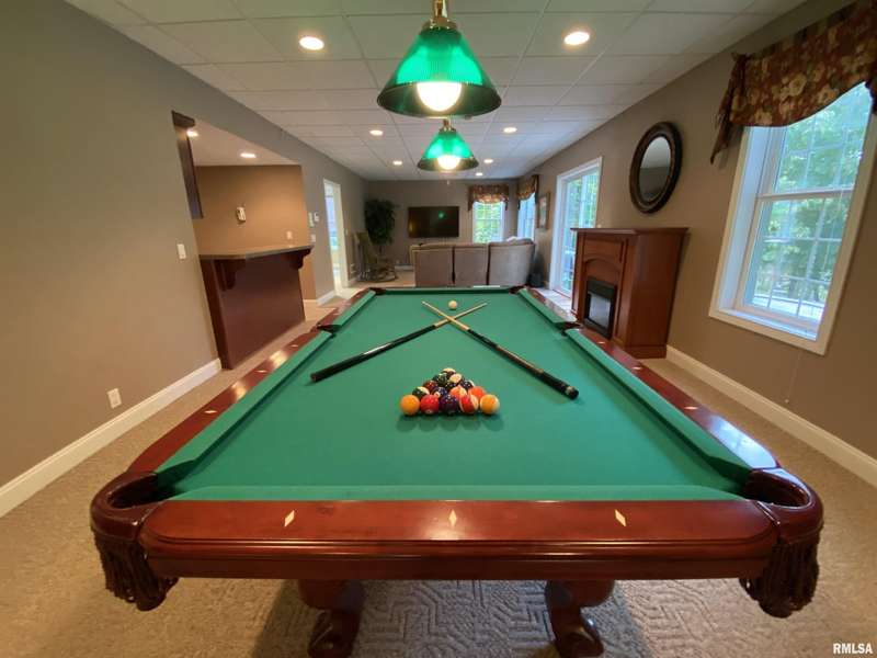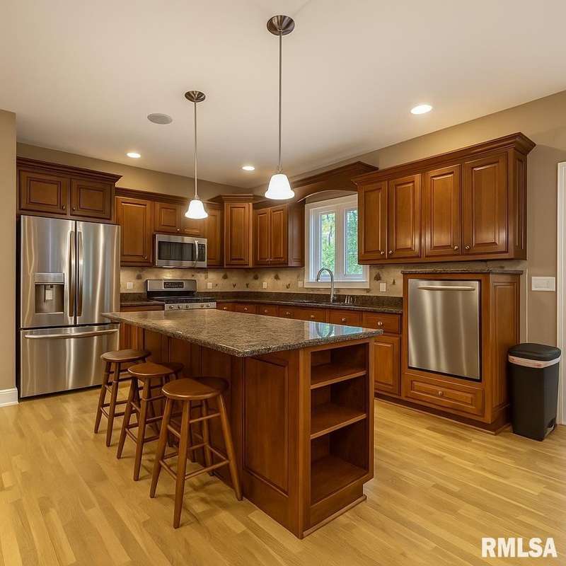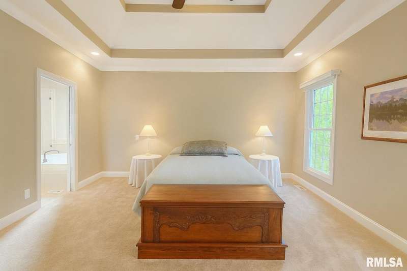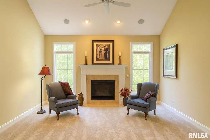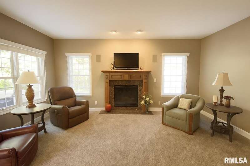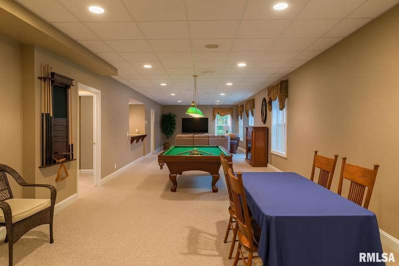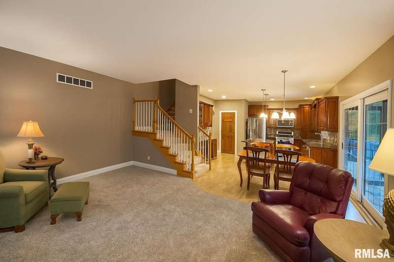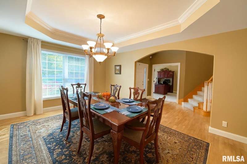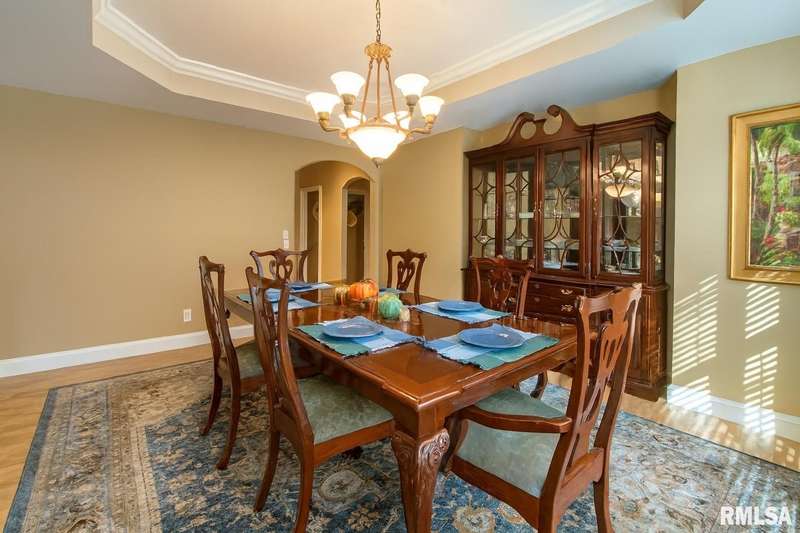 Tucked away on a quiet, wooded ½-acre cul-de-sac, this exceptional custom 1.5-story by Bruce Whitehouse blends craftsmanship, comfort, and class. Just 2 miles from The Shoppes at Grand Prairie in the award-winning Dunlap Schools, it greets you with a dramatic 2-story foyer, hardwood floors and an elegant staircase. A formal dining room with tray ceiling, private office, and a vaulted living room with fireplace lead to a gourmet island kitchen with granite counters, breakfast bar, all appliances, food pantry and butler’s pantry. The kitchen opens to a warm family room with a 2nd gas fireplace and a vaulted screened porch with decks overlooking the private backyard & woods. The main-floor primary suite features a tray ceiling and updated bath (’20) with three walk-in closets, LED backlit mirrors, and a tiled shower with frameless glass. Upstairs offers three spacious bedroom suites (one private, two sharing a dual-vanity bath), each with huge walk-in closets, plus a generous linen closet. The beautiful finished walkout lower level adds a large family/rec room with wet bar opening to a paver patio and lush, irrigated backyard framed by mature trees and brick-edged landscaping.Two daylight bedrooms (now office and gym) share a full bath. Another stairway from the garage leads to the office/workshop area.Extras: abundant built-ins/storage, updated geothermal HVAC (’23), new roof (’19), extra insulation, 3-car garage with epoxy floor, central vac, and Sonos sound system throughout!