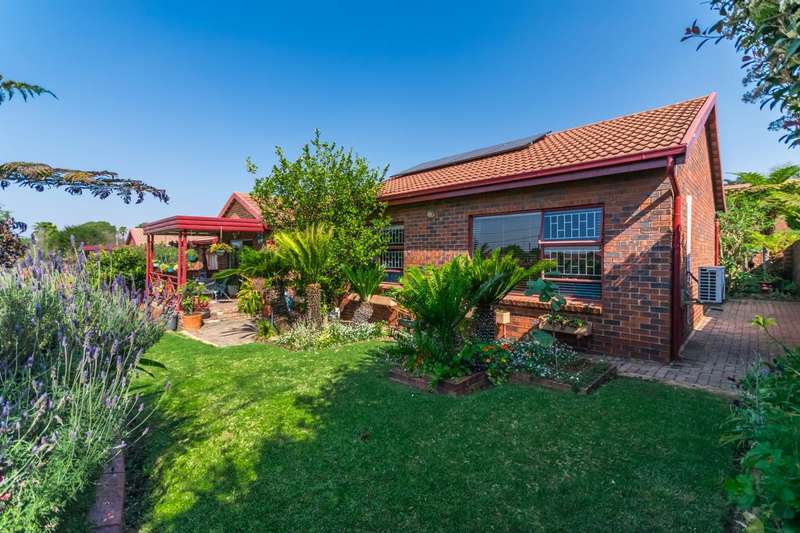 This immaculate simplex cluster home offers the perfect blend of convenience, privacy, and style. Key Features: Full Title Ownership ?Çô Only R450 levy per month Simplex design ?Çô No stairs Private wrap-around garden ?Çô Pet friendly Double garage with direct access into the home Facebrick ?Çô low maintenance Solar system with 6 panels, Battery and inverter 3 Spacious Bedrooms 2 Bathrooms (main en-suite) Dining room with laminate flooring, easy flow into: Large lounge / TV room with sliders to the garden Well-appointed kitchen with granite tops & lots of cupboards Entertainment & Outdoor Living: Covered patio with louver awning Beautifully manicured garden with lush lawn, cycads & colour Safe & private, tucked away in a cul-de-sac within the complex Location Benefits: Controlled access for peace of mind Close to major routes, shopping centres & excellent schools Why This Home? Not your everyday cluster ?Çô this one ticks every box! Whether you?ÇÖre starting out, growing your family, or scaling down (yes, it easily fits bulky furniture), this home adapts to your lifestyle. Make it happen ?Çô view today!