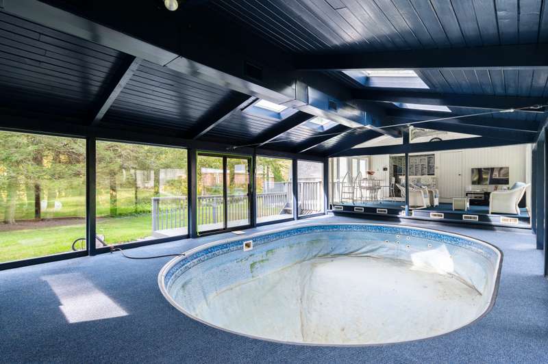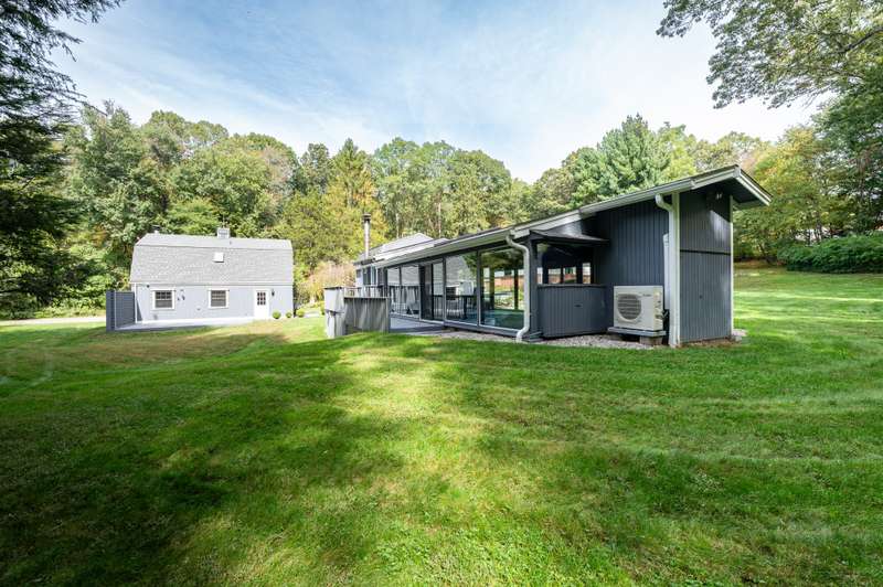 A rare opportunity - Escape to the privacy of country living with this unique property in one of Bedford's sought-after neighborhoods. Situated on 4 acres, the main house has 3 bedrooms and 1.5 bath, providing a blend of charm complete with sun-filled spaces. Great for entertaining, and a flexible floor plan is waiting for your personal touch! Situated on flat, manicured land, surrounded by mature trees and lush woods, the house is a true country retreat! The separate pool house features an indoor pool, sauna, bath, and lounge area perfect for relaxing or entertaining. The large barn with a 2-car garage provides ample storage. The property is equipped with a new whole-house generator (2023) that serves all three structures. Don't miss this opportunity to make this property your own! Property being SOLD AS IS.