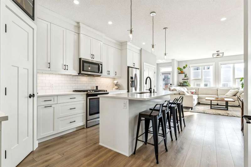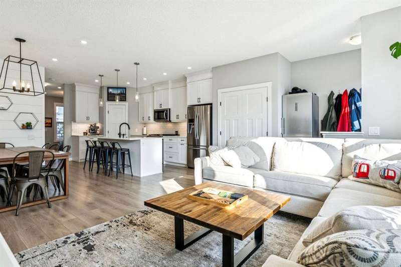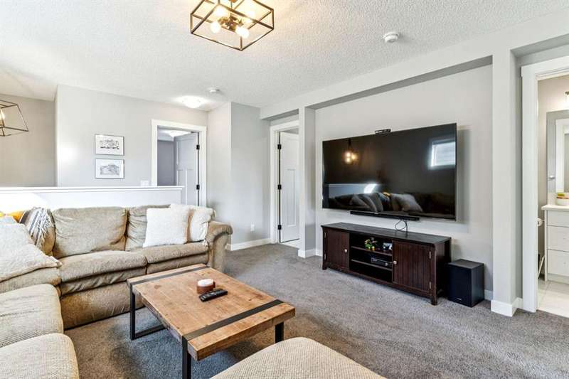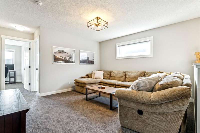 Beautiful Home in Airdrie at an Amazing Price! Welcome to Chinook Park, one of Airdrie’s most sought after new family communities. This 1,800 sqft two-storey home has everything you need—and more! Thoughtfully maintained and updated with high-end finishes, it feels brand new from the moment you walk in. The main floor is open, bright, and welcoming with soaring 9-foot ceilings and oversized windows that flood the space with natural light. Step inside and you’re greeted by a spacious front den—perfect for a home office, playroom, or creative space. Beyond that, the kitchen shines with quartz counters, upgraded stainless steel appliances, stylish black fixtures, and a stunning black Silgranite sink. Just off the kitchen is a bright dining area that easily fits a large table for family dinners or entertaining friends. The living room is cozy yet spacious, ideal for gatherings or simply unwinding. Upstairs, a huge central bonus room offers even more space to relax or play. The primary suite is bright and inviting, complete with a walk-in closet and a gorgeous 3-piece ensuite. Two more large bedrooms and an upstairs laundry room make daily life both comfortable and convenient. The private side entrance leads to a fully finished basement, giving you instant income potential or the perfect guest suite. Down here you’ll find a kitchenette, dining and living areas, a spacious bedroom, and a full bathroom. Outside, the backyard is private and ready for summer evenings on the patio. The oversized garage (23’ x 23’) is fully finished, insulated, heated, and wired for all your projects—your dream man cave or hobby space! This home truly has it all: space, style, and unbeatable value. Come see it today and imagine the amazing life waiting for you here in Chinook Park!
