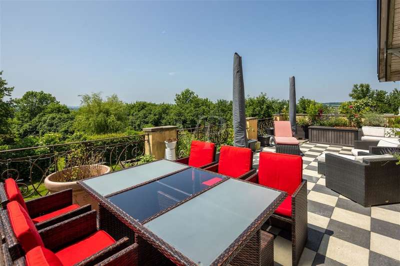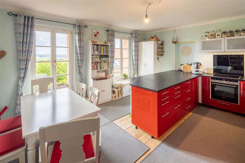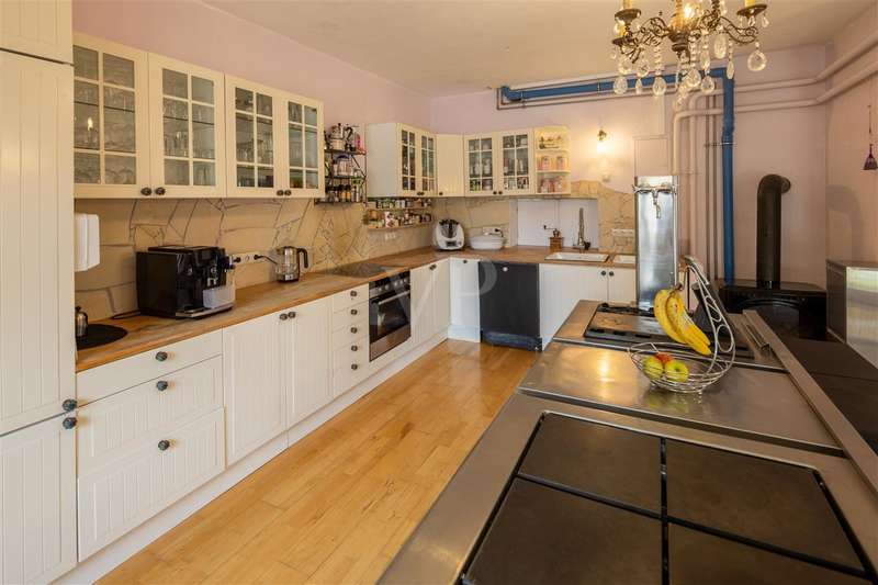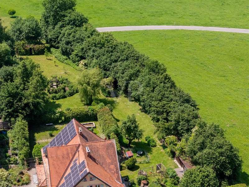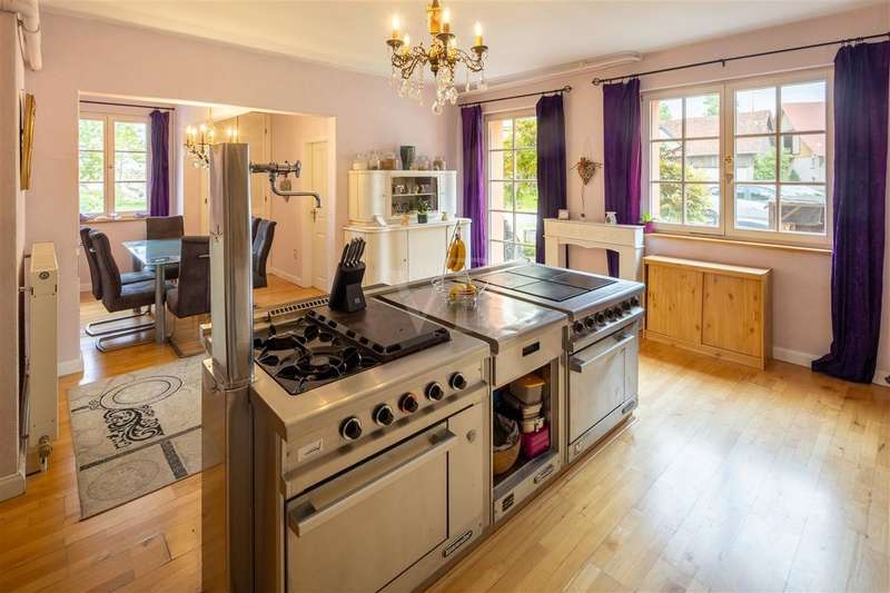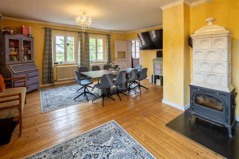 A unique property from 1924, which has been extensively modernized until 2023, awaits you. With a total living space of approx. 431 m², the house offers a successful fusion of historical charm and contemporary comfort. The solid brickwork and the cleverly thought-out room layout invite you to explore. The property has been extensively renovated and offers a wide range of features: Extensive refurbishment work was carried out back in 2004 - including the partial draining of the basement (except for the side of the driveway next to the house and the area by the entrance to the laundry room and basement apartment), the fundamental renewal of the house electrics and the modernization of the bathrooms. The wooden windows, which were renewed and partially enlarged at the same time, have double glazing and are characterized by masterful craftsmanship. The full thermal insulation installed in 2010/2011 perfectly complements the solar water heating system installed in 2010 and significantly increases energy efficiency. In 2020, the property received a new distribution box in the basement. As part of this, the electrics were also improved and renewed in parts. A modern fitted kitchen was installed on the second floor in 2021. This is equipped with high-quality Siemens and Bosch appliances - including an extractor fan, ceramic hob, oven, dishwasher and fridge-freezer. In addition, a photovoltaic system with a capacity of 13.5 kWp was installed in 2023, which, in combination with the newly installed wall box, enables a sustainable energy supply. The central heating supply is provided by an oil heating system and is supplemented by a total of six wood-burning stoves in the house, including several Swedish stoves. One solid fuel burner is present and in working order, but no longer has current approval. The wooden floorboards laid throughout give the rooms a warm, authentic atmosphere. A professional kitchen on the first floor is waiting to support your culinary ambitions. Equipped with two gastro ovens, electric and gas hobs as well as other Bosch appliances, it offers ideal conditions for extensive cooking pleasure. The second floor can be used as an independent living unit and offers the opportunity to enjoy an unobstructed view of the Ried as well as Bad Wurzach, Dietmanns and Ellwangen from the spacious terrace - an exceptional highlight of this property. On the second floor, there are four bedrooms, a bathroom and two unfinished rooms. One of the unfinished rooms already has partially prepared water connections and can be converted into a further bathroom. The top floor offers additional development potential - it currently houses a small hobby room. The spacious outdoor facilities are another highlight of this property. A lovingly designed garden paradise with several terraces, a balcony, a pavilion, a garden shed and a decorative fountain extends over approx. 3,744 m². The stylish garden design invites you to linger and enjoy. Parking is available and rounds off the offer. Overall, this is a stately property that impresses with its successful combination of historical flair and modern living comfort. Ideal for people who are looking for and appreciate a stylish retreat with a variety of uses. A viewing offers the best opportunity to discover the full potential of this property.