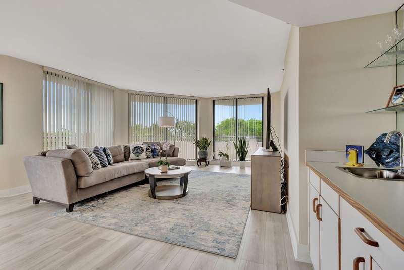 Rare opportunity to live in Southporte in Jonathan's Landing overlooking the Marina. 2/2.5 well maintained condo. with a split bedroom plan. Plenty of natural light from the ceiling to floor sliders and wrap around balcony affording a private, open feel and treetop views. New tile flooring throughout. Condo has a covered parking spot and includes a golf cart w/parking. Lobby area have been recently updated and is sleek and tasteful. Pool/ tennis courts. 2 manned gates, coded door entry and 24 hour security patrol for piece of mind. No Membership required. Boat storage & slips. Can lease right away making it a great investment property. Located close to restaurants shops, medical facilities, I-95 and the Turnpike. Minutes to the beach. Move right in or renovate to your personal taste.