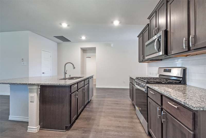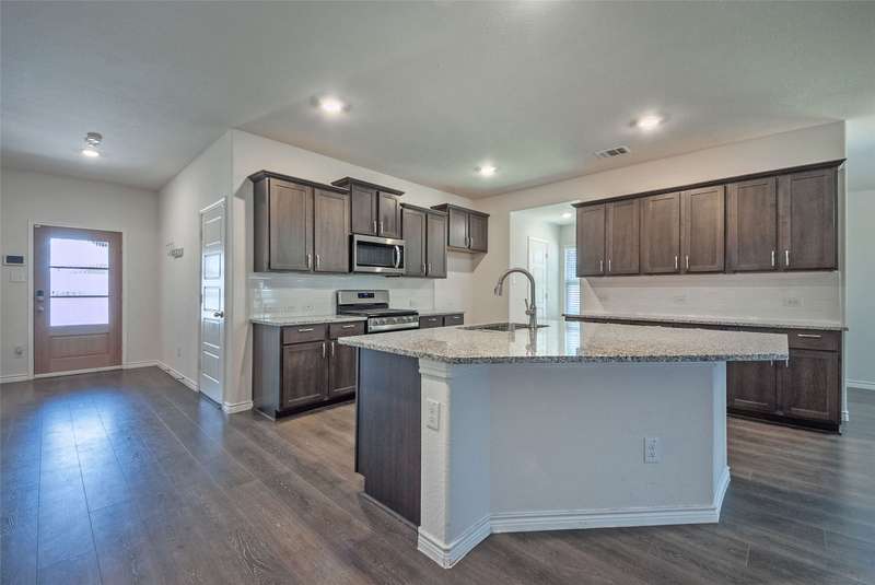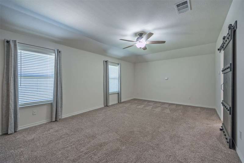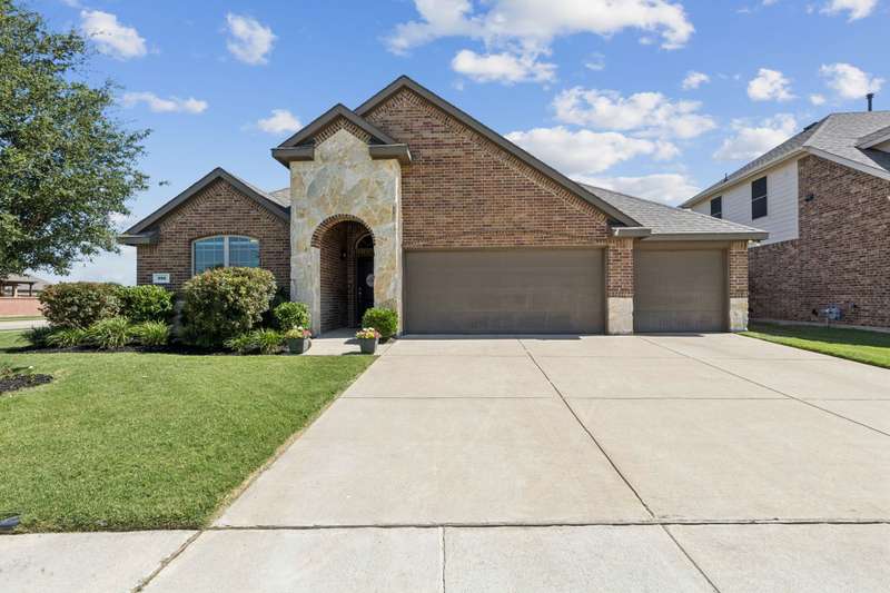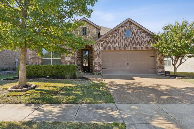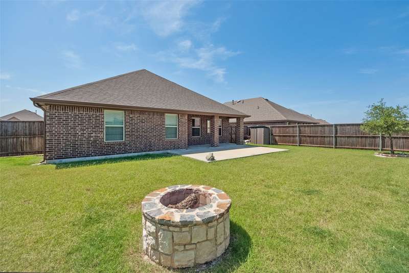 ASSUMABLE VA LOAN AT 2.625 INTEREST RATE FOR ALL QUALIFIED BUYERS! Step into this immaculate 4-bedroom, 2-bath home located in the highly sought after Williamsburg subdivision in Fate. Schools zoned for top-rated Rockwall ISD. Conveniently situated just minutes from I-30 and shopping, this home combines modern comfort with daily convenience. Enjoy an open floor plan with luxury laminate vinyl flooring throughout the main living areas. The spacious kitchen is a chef's dream complete with an over-sized center island perfect for entertaining. The lovely primary suite offers a tranquil retreat with a custom wood accent wall, oversized walk-in closet and a barn door leading to the ensuite bath. The versatile fourth bedroom makes an ideal home office or guest room. Stepping outside to a private backyard oasis enclosed by a privacy fence you'll find a covered patio with a 23x11 extension along with a custom stone fire pit area. The oversized lot provides plenty of space to unwind or host guests. 12 month electric usage was $241 TOTAL due to solar panels. All this plus access to numerous community amenities makes this home a perfect blend combining modern design with everyday functionality. Don't miss your chance to make it yours at an ASSUMABLE 2.625 INTEREST RATE LOAN
