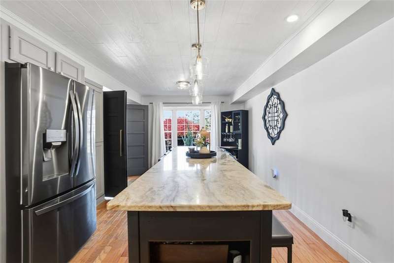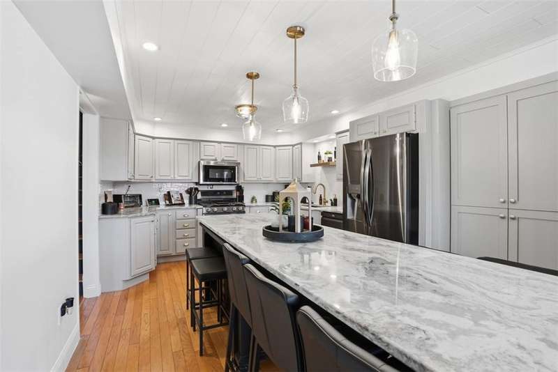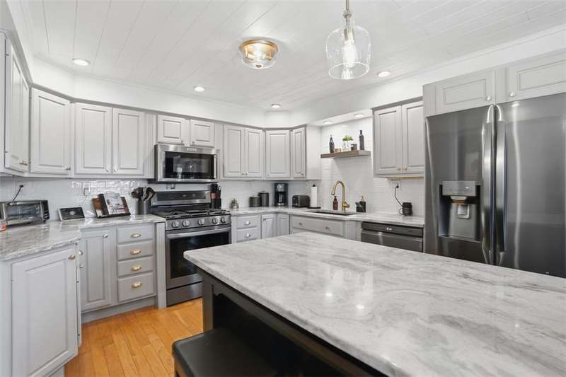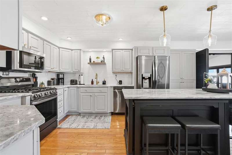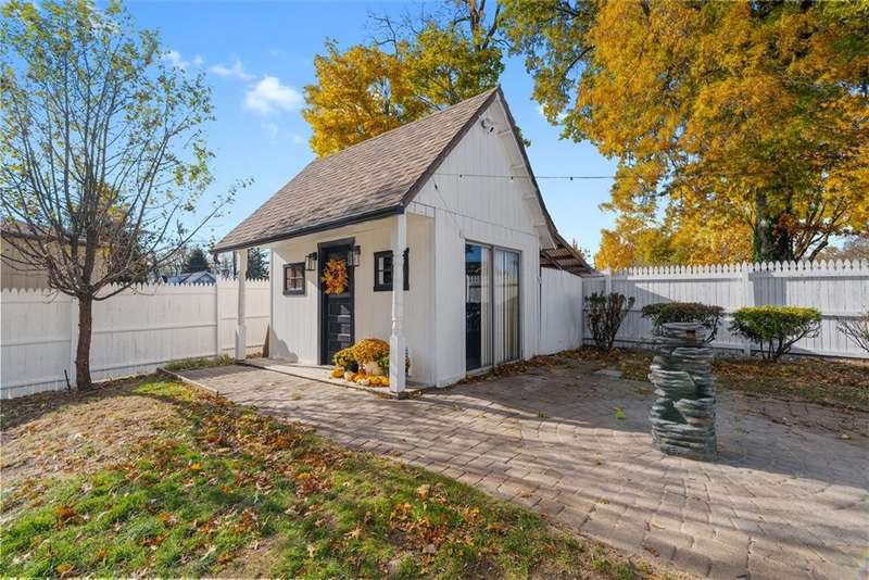 Welcome to this beautifully updated 4-bedroom, 2.5-bath brick home on a landscaped corner lot with a white picket fence. The stone paver driveway and inviting curb appeal set the tone for what's inside. Enjoy a spacious covered front porch with ceiling fan and sunshades, then step into a bright interior with gleaming hardwood floors throughout. The stunning remodeled kitchen features granite countertops, high-end stainless appliances, and exceptional craftsmanship. A completely renovated family room offers the perfect space for fun and relaxation. The primary suite includes a private bath and walk-in closet. Outside, a stone patio leads to a charming "she-shed" ideal for hobbies or storage. Comfort comes easy with newer dual-zone HVAC, plus updates including roof (2019), Nature Stone garage floor (2019), and garage door openers (2022). Conveniently located near shopping, dining, and schools?this home blends timeless charm with modern comfort!