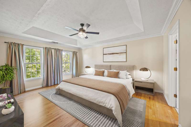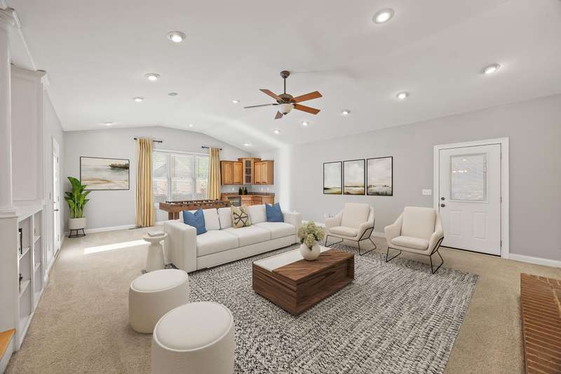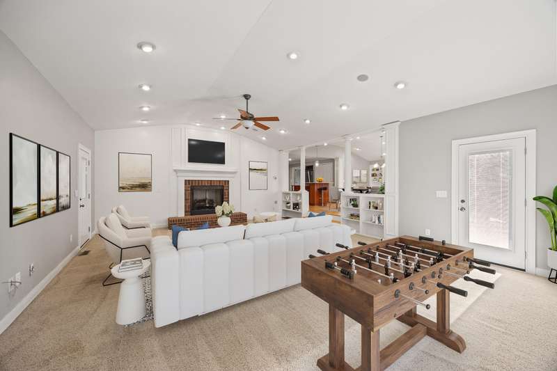 Welcome to 6025 Secretariat Circle in the established Derby Hills neighborhood of Versailles. This two-story home offers 5 bedrooms, 3 full bathrooms, and flexible living spaces throughout. The updated kitchen features granite countertops, a tile backsplash, stainless steel appliances, and an adjoining informal dining area. The first floor includes a bedroom with a gas log fireplace that could also serve as a living room, along with a spacious family room featuring a second fireplace. The deep two-car garage provides additional space for storage or a workshop. The second-floor primary suite includes an updated bathroom with dual vanities and an enlarged walk-in closet. A versatile bonus room offers potential for an office or hobby space, and laundry hook-ups are available on both levels. The backyard is partially fenced with attractive landscaping and exterior lighting. Derby Hills is a desirable neighborhood that includes its own park and is adjacent to Huntertown Elementary School, with convenient access to local shopping, dining, and commuting routes.