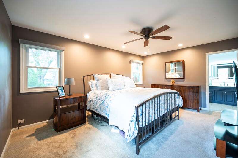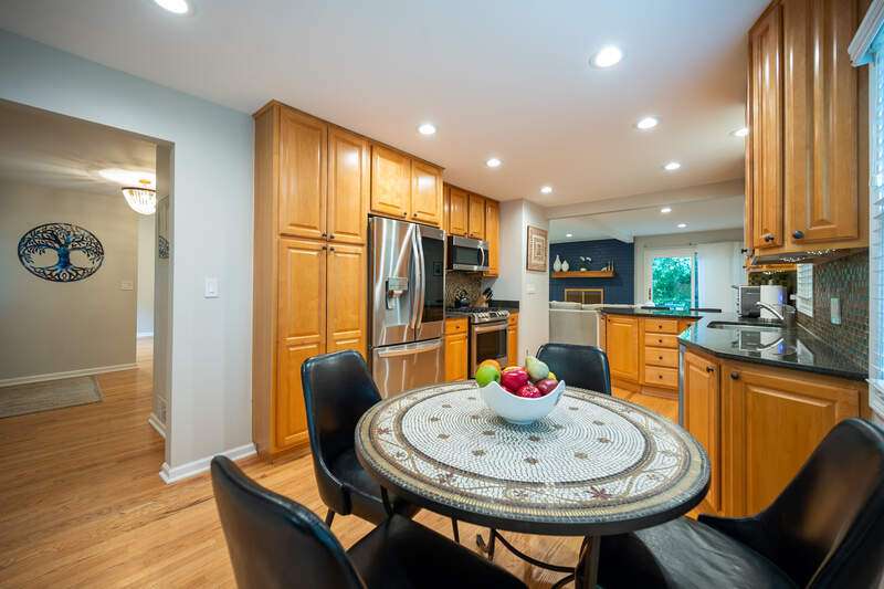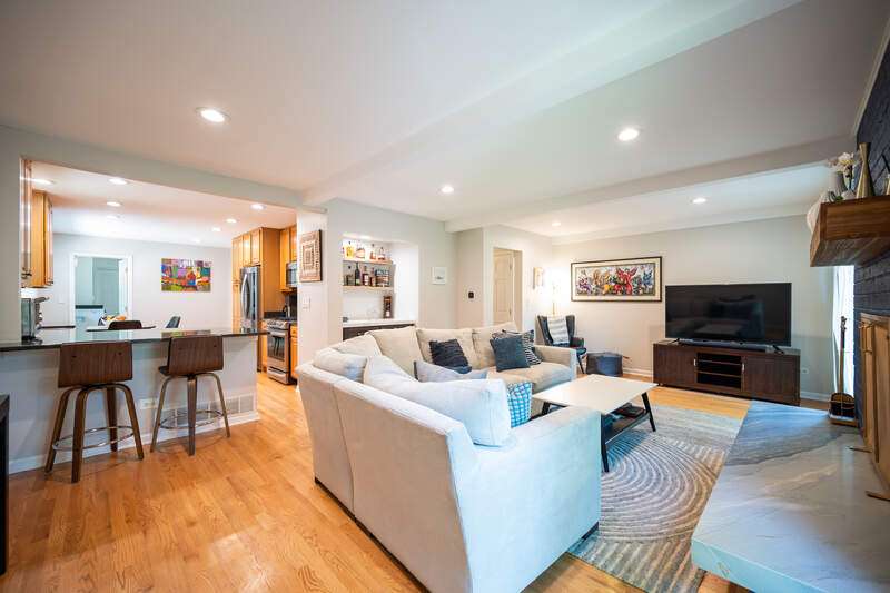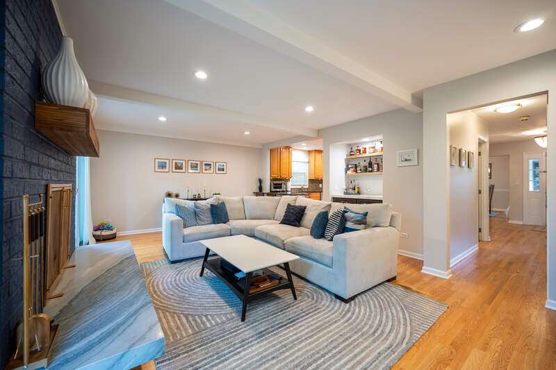 Prepare to fall in love with this beautifully updated & move-in ready colonial located on a quiet street in popular Sherwood Forest. An immaculate brick paver front walk leads to a charming, covered porch & the front door opens to a graciously sized & welcoming foyer. The 1st floor boasts gorgeous hardwood flooring, recessed lighting, and a terrific circular floor plan for easy entertaining and daily living. Fabulous eat-in kitchen features 42" cabinets, granite countertops, newer stainless steel LG appliances including a French door fridge/freezer, 5 burner gas oven/range, microwave (2019) and Bosch dishwasher (2021) with a generously sized table area plus a peninsula with stool seating - all open to the family room. The stunning family room has a striking brick surround wood burning fireplace w/ a gas starter, gorgeous quartzite hearth, a dramatic charcoal colored dry bar (plumbed to be a wet bar) with quartz countertop & floating wood shelving, and double sliding glass doors overlooking the paver patio & fenced backyard. Sunny & spacious living room w/ vaulted ceiling, formal dining room w/ chair rail molding, neutral/updated powder room, and convenient 1st floor laundry/mud room with brand new LG front load W/D (2025), laundry chute, exterior door to a separate dog run and access to the oversized attached garage outfitted with an EV charger. The roomy primary suite features an organized WIC and updated bath w/ Carrera marble floors, handsome navy "his & her" vanities, glass enclosed shower and LED/anti-fog mirrors. Ample secondary bedrooms all with large, organized closets and share a big hall bath with dual white sink vanities w/ marble counters. The basement is finished with luxury vinyl plank flooring in both the recreation room & office, has a huge mechanical/storage room plus two concrete crawl spaces for additional storage. Other upgrades include a brand-new roof (2025), new siding (2022), updated HVAC (2015) and easy access to parks, downtown HP & downtown Deerfield, Ravinia, Lake MI, transportation, shopping, recreation and so much more.