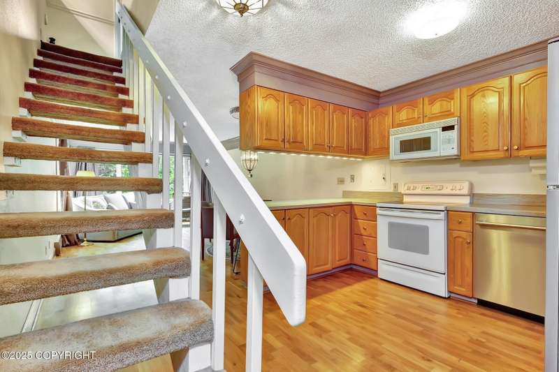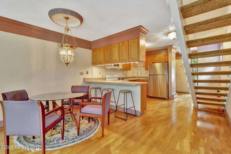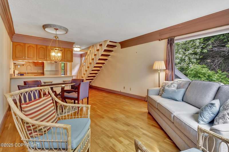 A Bootlegger Cove Admiralty Condo with AMAZING VIEWS. This is an end unit which means more windows and MORE LIGHT! Light & bright, this well kept, 2 bed, 1.5 bath home features lovely floors, spacious kitchen, main floor 1/2 bath for guests & wash/dry in the unit. The Coastal Trail and Park Strip are a couple of blocks away and all the amenities of a Downtown lifestyle nearby. Dues include heat!