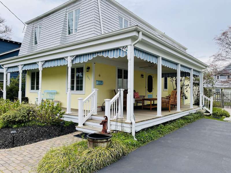 Beautiful Coastal Chic Home in Spring Lake available $6,000 per week in July and August for summer 2026 rental. Call for June pricing. September and winter rates available. 4 SL POOL/Beach badges, allow swimming at boardwalk pools. Updated kitchen and pottery barn furniture. 3 Br's two have trundles. 2.5 baths, bonus detached office. Relaxing front porch, rear screened in porch, gas fireplace, outdoor shower, electric car charger, grill. laundry. One King size bed, one full size w/trundle. Two twins one with trundle. Lovely screened in porch w/table and chairs. Bonus finished room/office attached to garage with heat/AC. Outdoor shower. Plenty of parking in oversized driveway. Two adult bikes, one child bike available. 6 blocks to SL beach and boardwalk Electric Car Charger in driveway.
