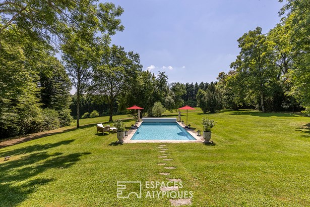 The exteriors share the varied species of several hundred trees and plants. A terrace of more than 150m2 gives access to a heated swimming pool which fits perfectly into its environment. Independently of the castle, a thatched cottage to renovate offers many additional possibilities.