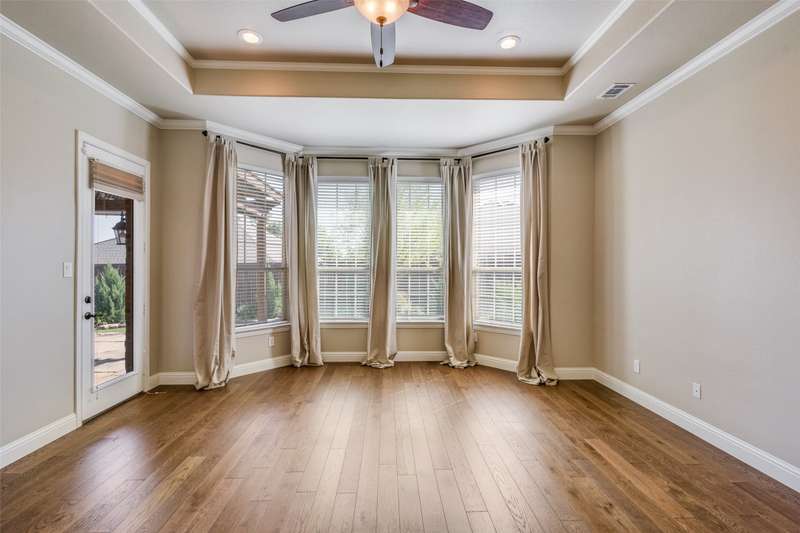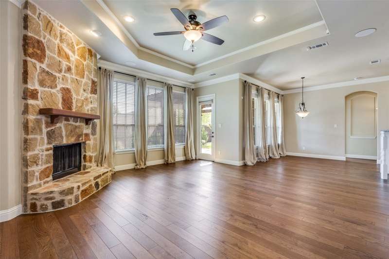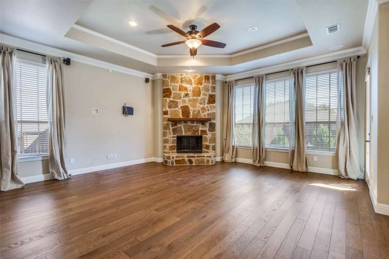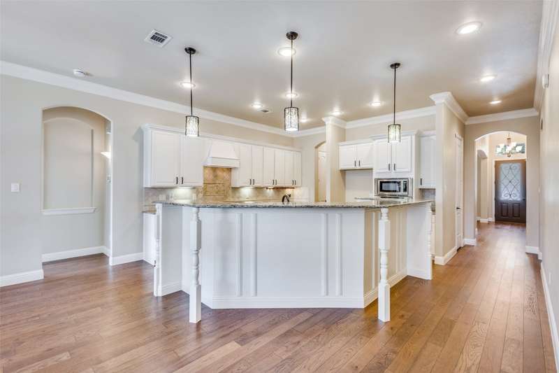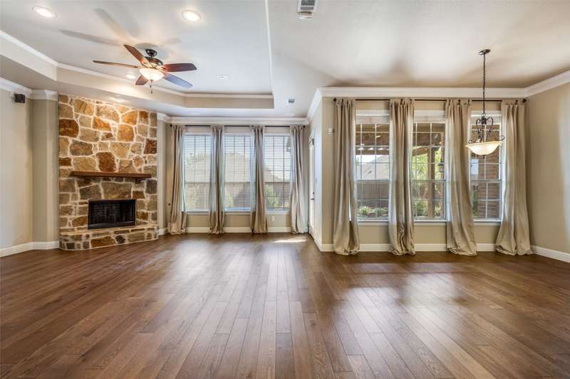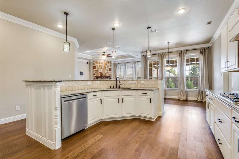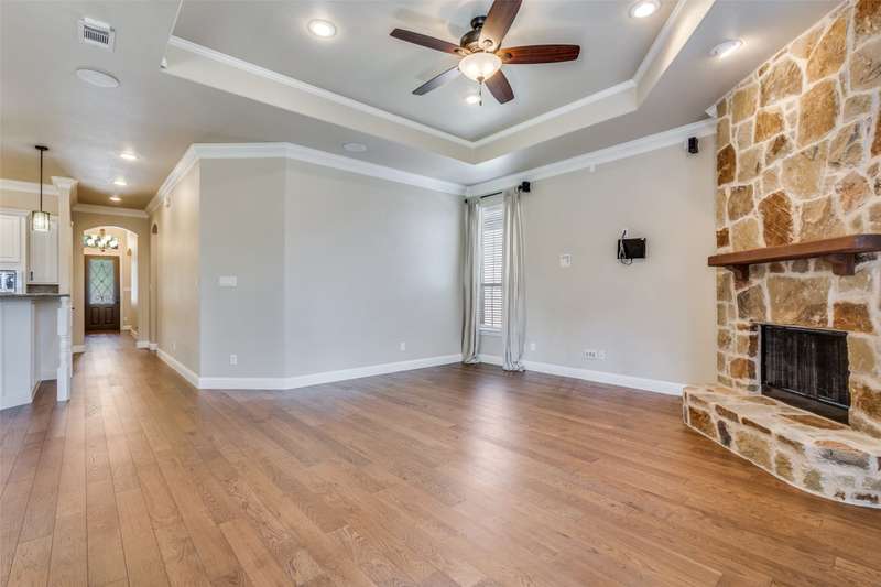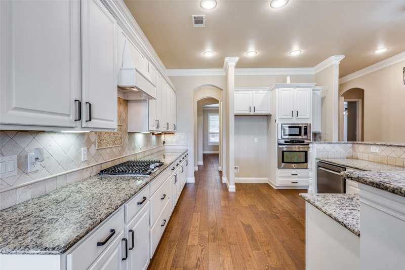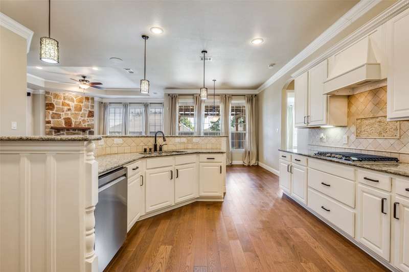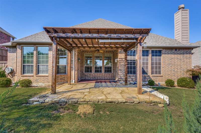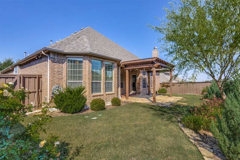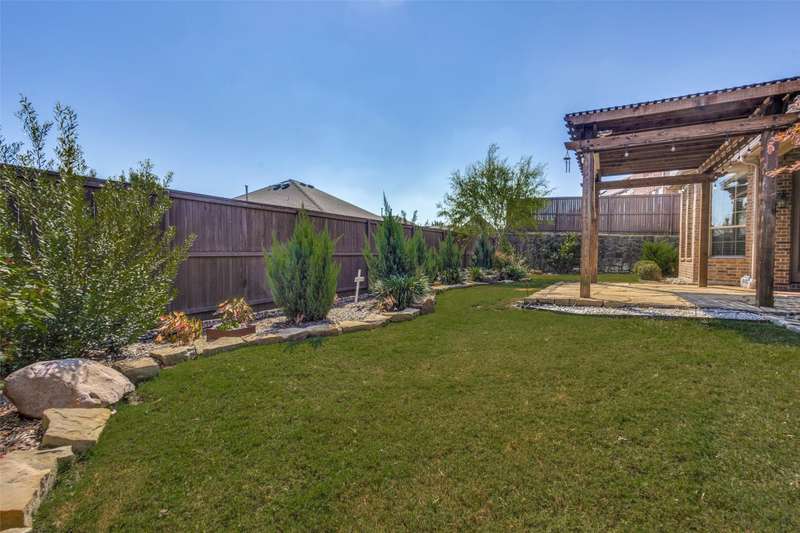 Nestled among the winding creeks of McKinney, the charming Cambridge community offers a serene escape surrounded by lush woodlands and vibrant greenery. Here, residents revel in peaceful surroundings while staying effortlessly connected to nearby lakes and scenic trails. Step into this inviting home and discover a beautifully landscaped, ultra-private yard, complete with a shaded pergola, extended flagstone patio, and fresh rock accents for effortless outdoor living. The exterior boasts practical perks like a 2018 roof with radiant barrier, a 50-gallon gas water heater, and a 3-car tandem garage-ideal for vehicles, boats, or extra storage including a dedicated mudroom. An open floor plan flows seamlessly from a grand family room-anchored by a cozy gas-wood fireplace and a wall of windows flooding the space with natural light. Recently refreshed kitchen in crisp white with dentil crown molding, granite countertops, stainless steel appliances (including a 2025 dishwasher), and soft-close cabinets. Gleaming 2024 hardwood floors throughout, with elegant Travertine in wet zones for timeless durability. Crown molding adds refined touches throughout, while a versatile front study doubles as a second living space or fourth bedroom. The expansive master suite retreats to the backyard and features an updated ensuite: dual vanities with granite counters, a deep soaking tub, frameless glass shower, and an oversized walk-in closet. Stay secure with a wired DVR outdoor camera system, SimpliSafe home automation, and a Rachio smart irrigation. A short drive whisks you to Historic Downtown McKinney, alive with vibrant events, farm-to-table dining, boutique shopping, and live entertainment. Families will appreciate walking distance to the highly rated McKinney ISD Schools. In Cambridge, quality education meets natural serenity-creating an ideal haven for those seeking the best of suburban charm and urban energy. Schedule your tour today and make it your home.