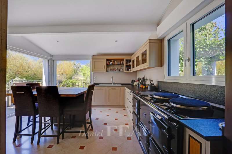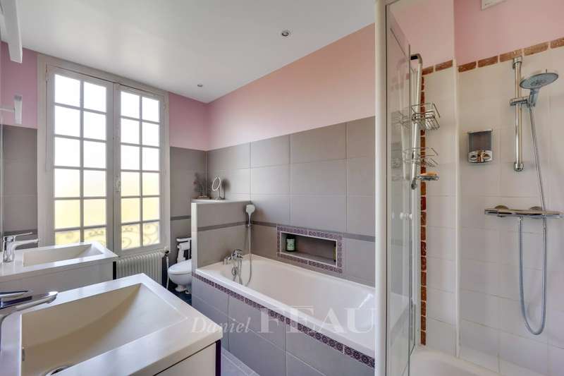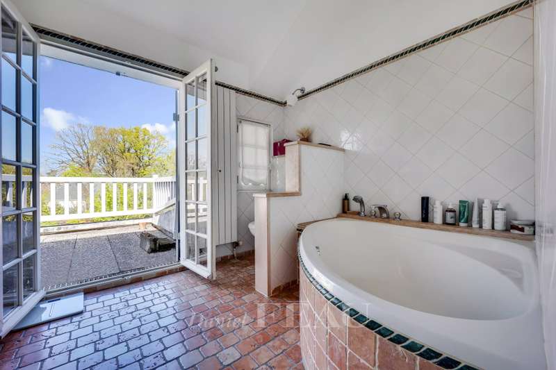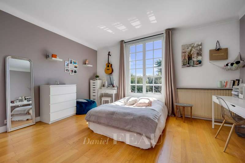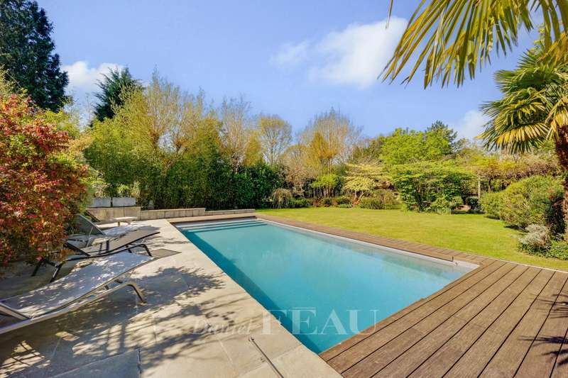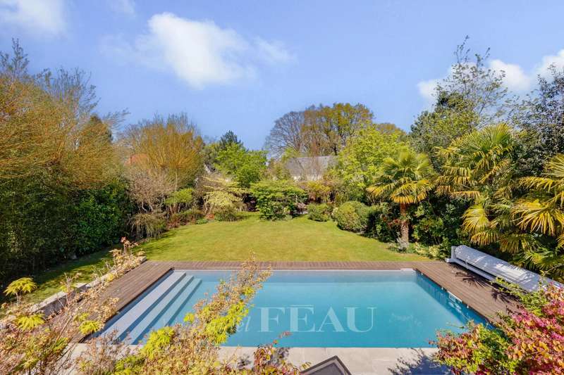 This delightful early 20th century property bathed in sunshine is hidden from view in a peaceful over 1000 sqm landscaped garden with a heated swimming pool, an elegant gazebo and a conservatory. In very good condition, it offers 300 sqm of floor space and 227 sqm of living space including a vestibule with a guest wc, an over 50 sqm dual-aspect living/reception room featuring parquet flooring and a fireplace, an adjacent dining room, and a luxuriously equipped family kitchen accessing the terrace and garden. Upstairs are a master suite with a bath/shower room, wc and dressing room, a study with a dressing room opening onto a terrace, and a bedroom and a bath/shower room. The top floor comprises a 3rd bedroom. Ideal to welcome friends and family, the bright garden-level comprises a 4th bedroom, a recreation room or possible 5th bedroom, a shower room and a separate wc. With a utility room, an air-conditioned wine cellar (250 bottles), a garage and technical premises. In a convenient location a stone’s throw from Fausses-Reposes forest, the schools, the bus-lanes and the station.