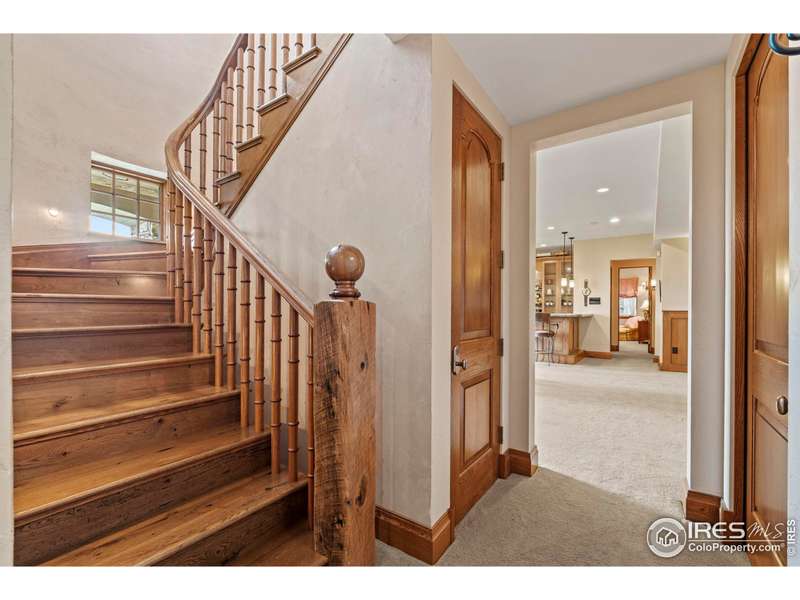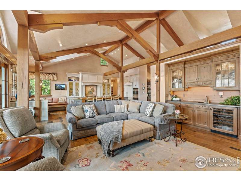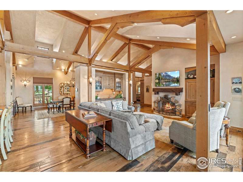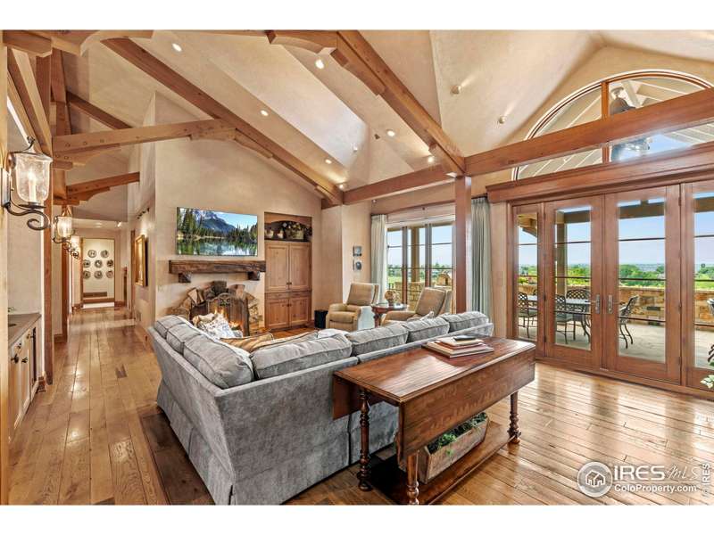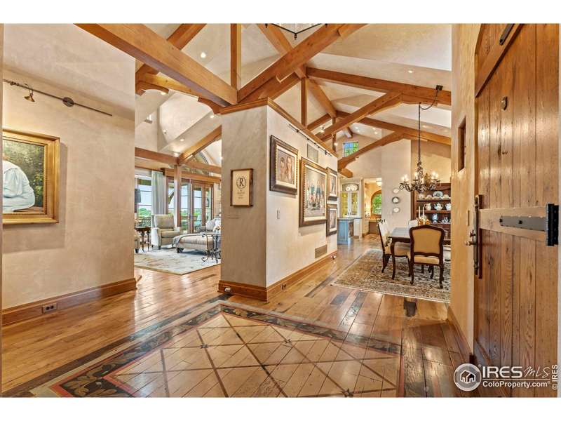 Set on arguably the best lot in all of Harmony Club, this custom home blends rustic refinement with architectural artistry. Timeless materials and unmatched views capture the essence of refined golf course living and high-end design, backing to water and the 8th fairway of the private Jim Engh-designed course. Conceived with enduring craftsmanship and elevated detail, every element of this Colorado-inspired residence reflects a deep appreciation for quality, comfort, and setting-while capturing panoramic mountain vistas from nearly every room.A private front courtyard with a hobbit-doored potting shed and gas lanterns sets the tone for the warm, character-filled interior. Reclaimed barnwood floors, hand-pegged beams, and a cozy dining nook pair beautifully with a chef's kitchen outfitted with Wolf, Sub-Zero, and a dramatic oversized solid-surface island.The open layout flows into a soaring great room anchored by one of four distinctive Isokern fireplaces-crafted from volcanic pumice mined from Iceland's Hekla volcano. These fireplaces add charm, warmth, and high-efficiency performance to every space they serve.The main-floor primary suite offers five-star comfort with its own fireplace, steam shower, soaking tub, and direct access to the deck with unobstructed 180-degree Front Range views. The walk-out lower level is ideal for entertaining, with a full bar, media space, and three spacious guest bedrooms.Additional highlights include a custom half-glass Dutch door (the classic "Mr. Ed" style), dedicated dog run and dog bath, an oversized 3-car heated garage, and smart storage. A Control4 system allows easy control of lighting, audio, HVAC, and security-compatible with 35,000+ devices.As part of Harmony Club, owners enjoy access to golf, pool, clubhouse, fitness, tennis, pickleball, and trails. This is more than a home-it's a legacy property rarely offered and meant to be shared for generations.