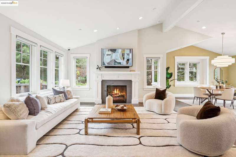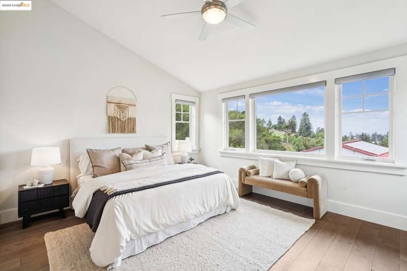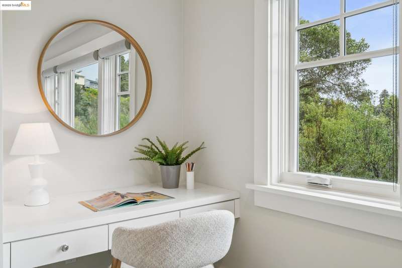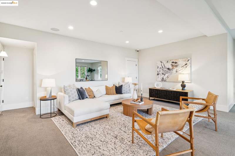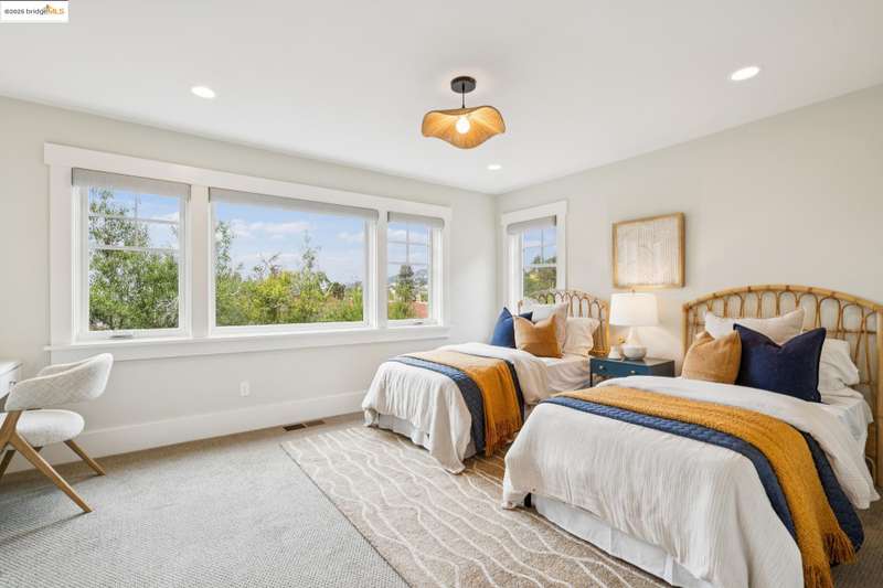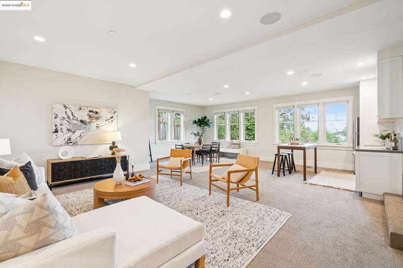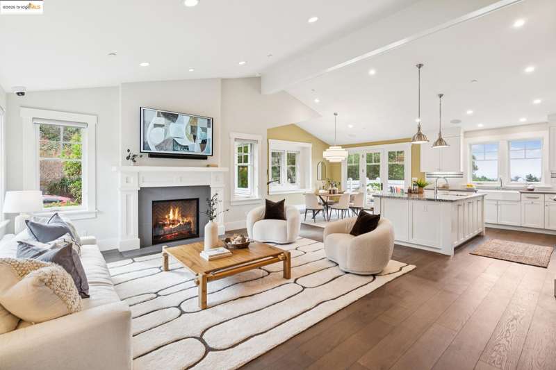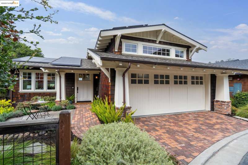 8yr old level-in contemporary Craftsman home designed/built by Mark Becker in 2017 -- on a quaint private lane with a small HOA of 8 homes. Upper level: Zero steps into an open-plan great room with soaring vaulted ceiling, views of Mount Tam, a luxury kitchen with a generous island, doors to a private outdoor deck, a deluxe primary suite with fireplace and a view (perfect for down-sizers), plus an office, 2 full bathrooms, and interior access to 2-car garage. Even the garage has a vaulted ceiling and clerestory windows! Lower level: offers 2nd huge open living area with kitchenette, 2 guest bedrooms, 1 full bathroom, storage, wine cellar, and separate entrance! Layout offers flexibility for 2 parties with 2 entrances. Impeccable condition! Fully loaded with owned Solar, 2 Tesla storage batteries, TV’s + Sonos speakers, window treatments, and closet organizers. Low maintenance property with Village Market just down Clarewood Drive, Claremont Country Club & great schools nearby, minutes to Rockridge shops and restaurants.
