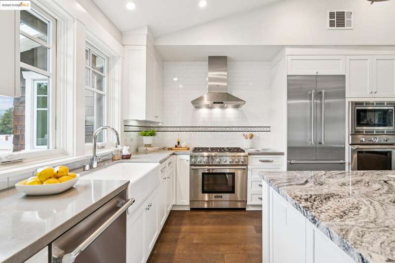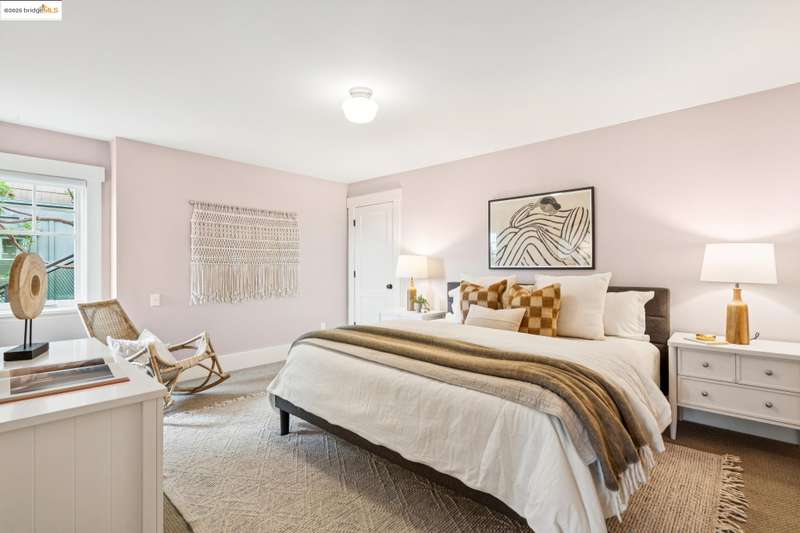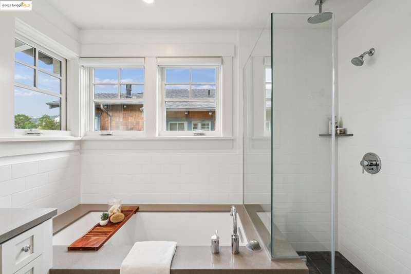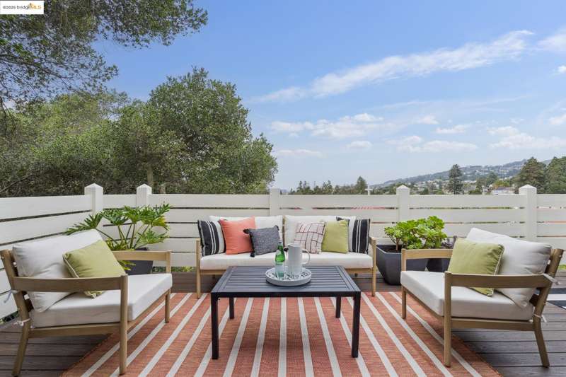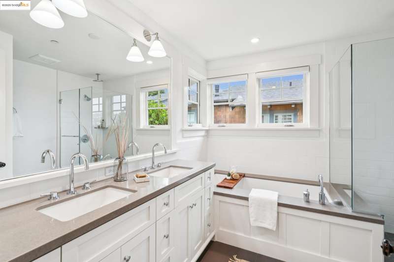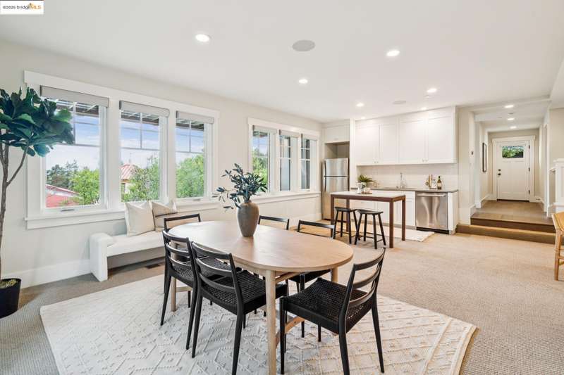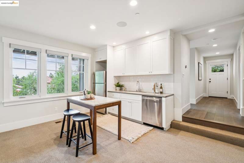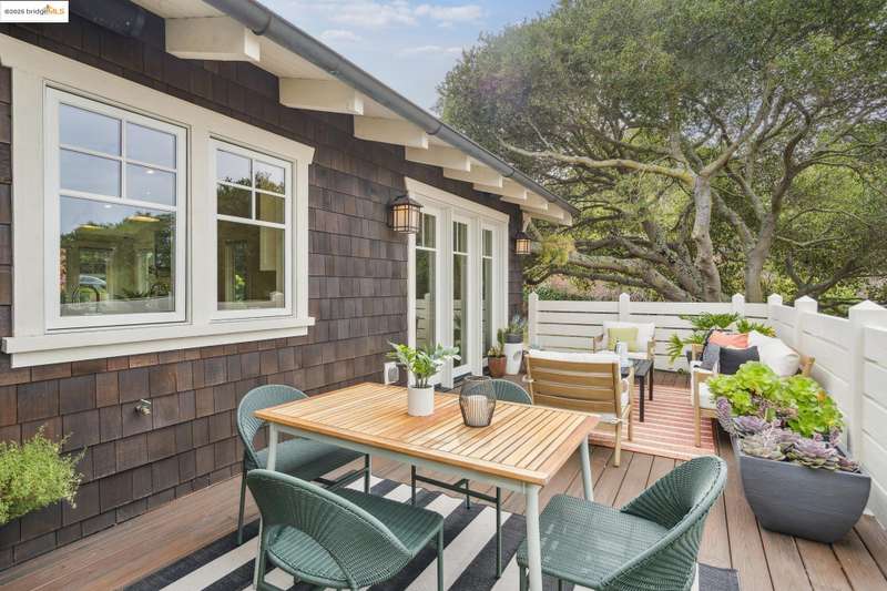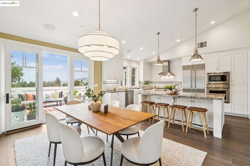 8yr old level-in contemporary Craftsman home designed/built by Mark Becker in 2017 -- on a quaint private lane with a small HOA of 8 homes. Upper level: Zero steps into an open-plan great room with soaring vaulted ceiling, views of Mount Tam, a luxury kitchen with a generous island, doors to a private outdoor deck, a deluxe primary suite with fireplace and a view (perfect for down-sizers), plus an office, 2 full bathrooms, and interior access to 2-car garage. Even the garage has a vaulted ceiling and clerestory windows! Lower level: offers 2nd huge open living area with kitchenette, 2 guest bedrooms, 1 full bathroom, storage, wine cellar, and separate entrance! Layout offers flexibility for 2 parties with 2 entrances. Impeccable condition! Fully loaded with owned Solar, 2 Tesla storage batteries, TV’s + Sonos speakers, window treatments, and closet organizers. Low maintenance property with Village Market just down Clarewood Drive, Claremont Country Club & great schools nearby, minutes to Rockridge shops and restaurants.
