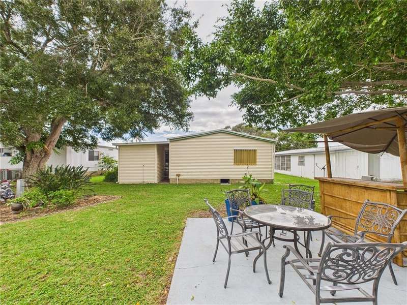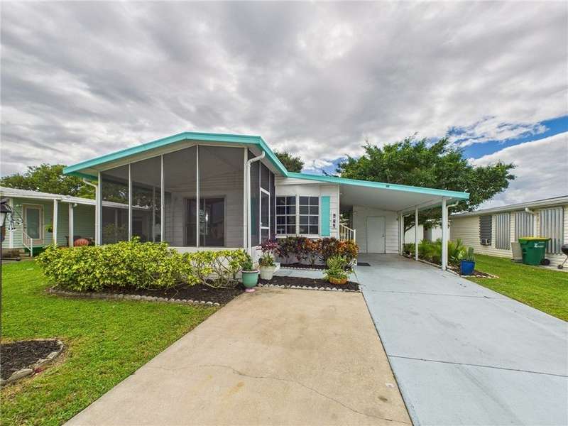Charming and functional 2-bed, 1.5-bath manufactured home in the sought-after Barefoot Bay community?popular with seasonal owners! Enjoy an active Florida lifestyle with 3 pools, golf, clubhouses, tennis, shuffleboard, and deeded beach access. Features include a 2022 roof, new washer & dryer, eat-in kitchen, screened patio to have your morning coffee on or afternoon drink relaxing outdoors, and small storage shed. Golf Cart friendly community. Affordable coastal living with endless amenities!