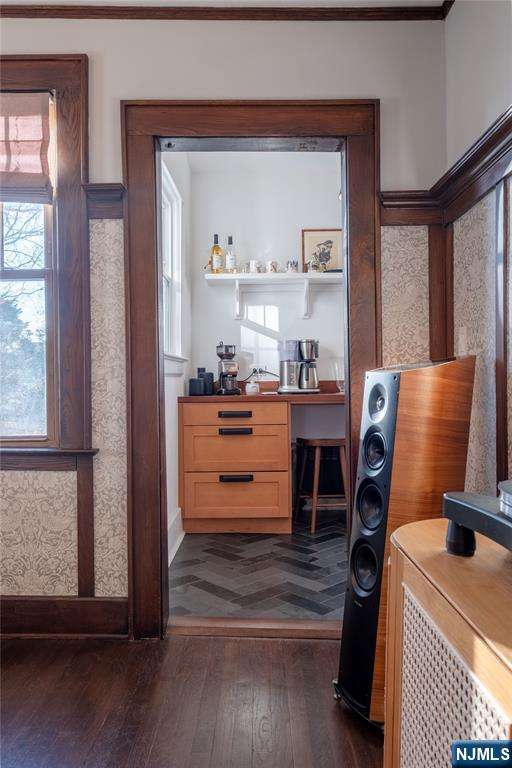 Step inside 36 Clarendon Place and fall in love with where old-world charm meets modern living. This beautifully updated 3-bedroom side-hall Colonial sits on a peaceful tree-lined street in Bloomfield, offering warmth, character, designer flair, and quality finishes throughout. Upon entering, you're welcomed into a living room with oak floors and a wood-burning fireplace, adjacent to a sun-filled den. The formal dining room features William Morris beaded wallpaper, adding timeless elegance. The dream kitchen offers high-end appliances, cherry cabinets, a slate floor, and a butcher's pantry with a breakfast bar, separated by an original wood pillar. A renovated powder room completes the first floor. Upstairs, the nicely sized primary bedroom includes a radiant-heated sunroom. Two additional bedrooms showcase sophisticated deep tones and textures. The well-maintained bathroom offers classic vintage charm with its retro tub and wainscoting. The third-floor is ideal for a home office, playroom, or creative space. Multi-level outdoor areas include a wood deck off the kitchen and a patio perfect for BBQs and entertaining. 2-car detached garage adds convenience and storage. Every corner reflects thoughtful updates and care, creating the perfect blend of comfort, style, and serenity. Completed in 2025, this true Bloomfield gem is just blocks from the shuttle bus to the train, GSP entrance, and NJ Transit bus, ideal for commuters. Home Warranty included for the buyer's peace of mind.