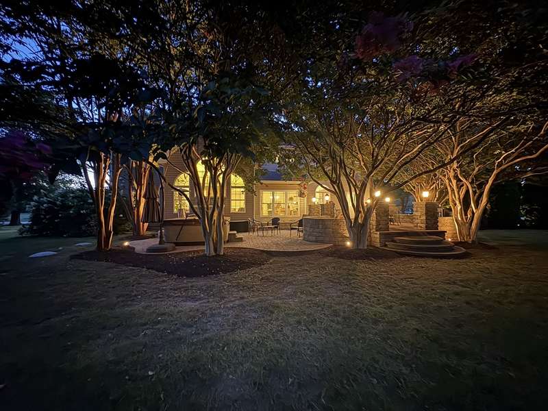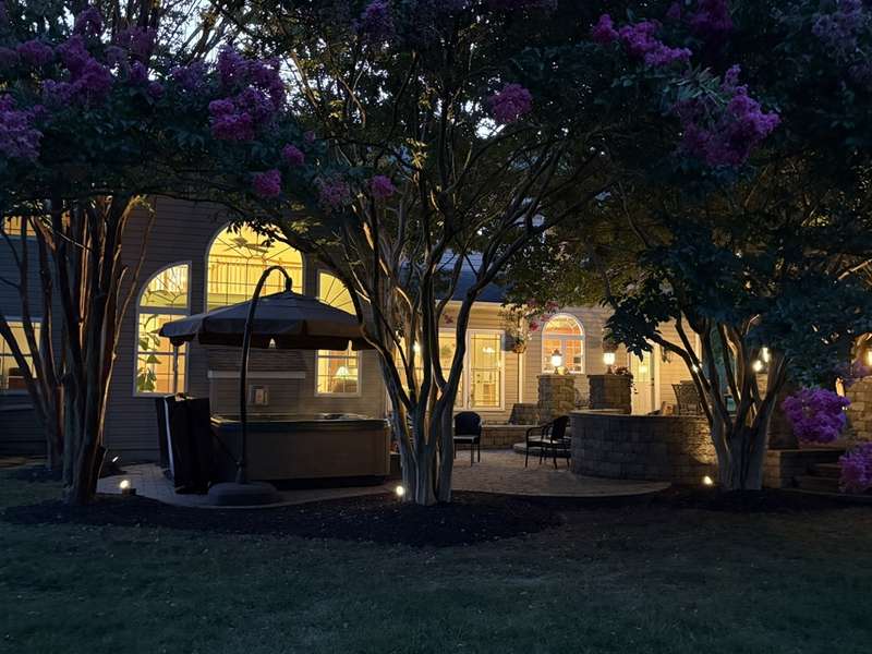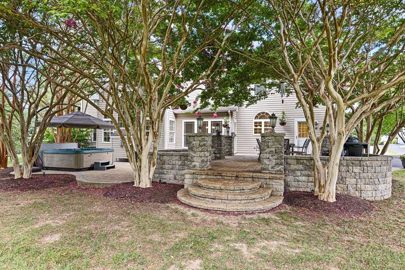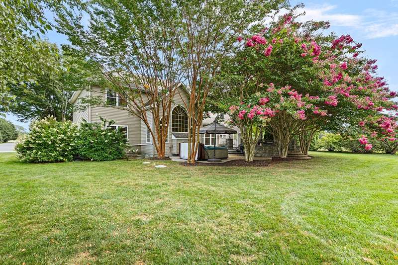 Wow! This 4-bedroom, 3.5-bath Colonial—the largest model in the sought-after Chesapeake Meadows community within the Appoquinimink School District—sits on a beautifully landscaped .89-acre private lot and is loaded with custom upgrades. A newly paved driveway and Cambridge paver walkway lead to the welcoming 2-story foyer, highlighted by a grand chandelier draped from a custom-painted medallion. Flanked by formal living and dining rooms with hardwood floors, wainscoting, and crown moulding, the foyer opens to a light-filled 2-story family room with a gas fireplace, marble surround, upgraded efficiency fan, and accent lighting tucked behind moulding. French doors lead to a private study, while a dual staircase enhances flow and design. The gourmet kitchen features Corian countertops, center island with pendant lighting, stainless steel appliances, 42” cabinets, ceramic tile backsplash, spacious pantry, and a full-sized built-in desk. A butler’s pantry offers the perfect spot for your coffee station or glassware. The kitchen opens to the outdoor entertaining spaces: a two-level stone and paver patio with extensive landscape lighting, Coleman spa, lush garden beds, and a park-like backyard bordered by mature trees for privacy. Upstairs, a dramatic open catwalk overlooks both the family room and foyer, enhancing the home’s airy design. The luxurious primary suite includes a vaulted ceiling with custom trim, sitting area, spa-like bath with soaking tub, walk-in shower, and dual sinks, plus an extraordinary 21’ x 16’ dressing room with custom cabinetry, deep drawers, and a storage bench. Three additional spacious bedrooms share a dual-sink hall bath. Plush new carpet runs throughout the second floor. The finished basement is designed for flexibility and entertaining, offering multiple living spaces with luxury vinyl tile, a recreation/game area with peninsula counter, kitchenette with sink and mini-fridge, exercise room, workshop with cabinets, full bath, and ample storage with built-in shelving. Additional highlights include: Oversized 2.5-car turned garage with new quiet belt-driven doors, side entry, and mudroom-style boot nook Solid-core interior doors throughout Custom moulding and upgraded lighting fixtures inside and out Tinted picture windows for beauty, privacy, and efficiency Ceiling fans in most rooms Instant hot water via tankless system Dual HVAC zones Fresh neutral carpet and new kitchen tile flooring Nothing to do but move right in and enjoy this meticulously maintained, feature-packed home. Easy to show—schedule your private tour today!