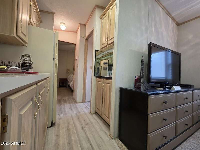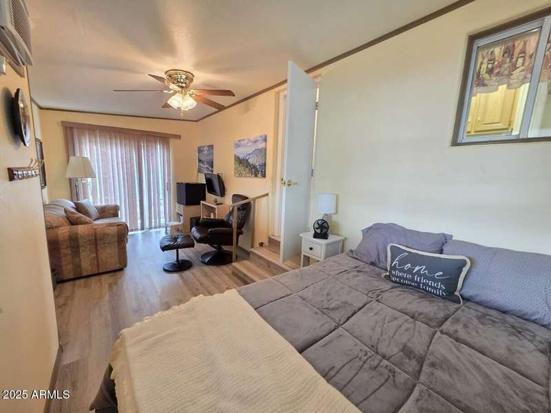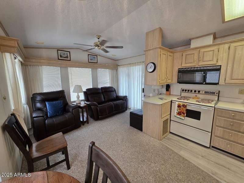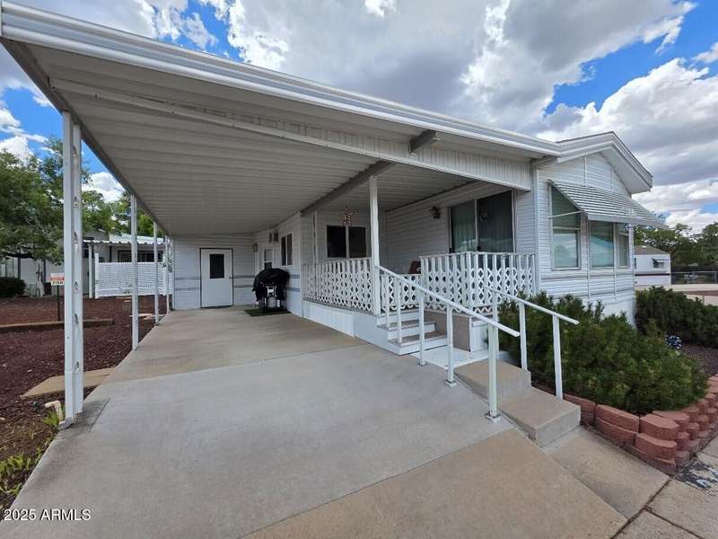 Escape the summer heat and enjoy the fresh mountain air in this charming 1-bedroom, 1-bath manufactured home, perfectly situated in a 55+ community. Ideal as a summer retreat, this home offers a cozy interior layout with a welcoming living area that flows into the dining space and kitchen. Down the hallway, you'll find the bedroom and bathroom, while an added bonus room provides extra storage or a comfortable space for visiting guests. Additional features include an attached utility closet perfect for extra storage and provides a stacked washer & dryer. Enjoy the some fresh air from the quiet front patio or the side sitting area. Venture In is open from May 1st through October 31st.