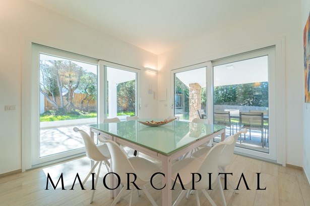 The villa is developed on one level and hosts four spacious bedrooms, two of which are doubles and two twins, ideal for accommodating families and guests. The three bathrooms, one of which is en suite, are made of high-quality materials and equipped with every comfort.