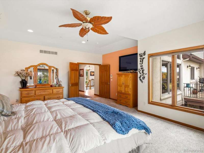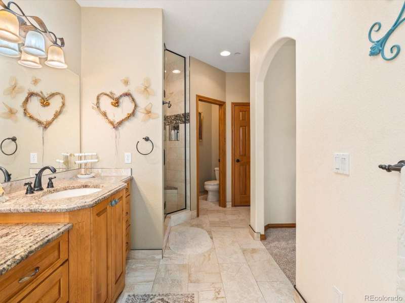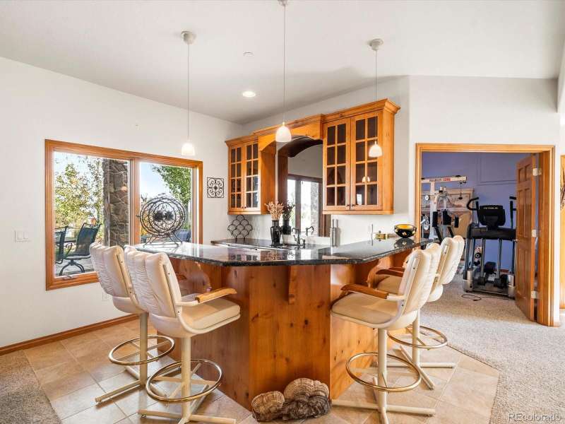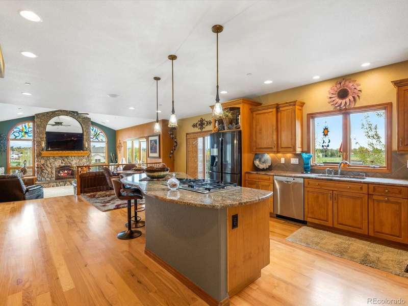 Welcome to 14870 Mariposa Court, an extraordinary custom estate perched atop a private hill in Westminster, showcasing breathtaking mountain views across 2.52 serene acres. Designed for those who value privacy, craftsmanship, and elegance, this home blends timeless luxury with modern Colorado living.Step inside to sun-drenched spaces with beautiful hardwood floors and three custom stone fireplaces that bring warmth and sophistication throughout. The main-floor primary suite is a private retreat with a skylit five-piece bath, walk-in closet, and peaceful views of the surrounding landscape. A spacious main-level office with abundant natural light creates an inspiring environment for work or creativity.At the heart of the home, the gourmet kitchen shines with high-end appliances, gas cooktop, dual sinks, and custom cabinetry enhanced by soft ambient lighting. The kitchen opens to the upper deck, where panoramic sunsets and fresh mountain air set the stage for unforgettable evenings.The finished walk-out basement is designed for entertaining and relaxation, featuring a wet bar, wine fridge, dishwasher, cozy fireplace, and a Jack-and-Jill bath connecting two generous bedrooms.Outdoors, enjoy a tranquil pond, beautiful water feature, and propane fire pit surrounded by lush grounds with 100+ mature trees. The 2,400 sq ft barn offers endless versatilityfully insulated with electricity, RV access, and a loft for hobbies, storage, or an impressive workshop. A charming chicken coop and decorative windmill complete the propertys character.The home features a private well (household + irrigation use) with access to public water, offering flexibility, independence, and peace of mind. Ideally located near The Orchard Town Center, shopping, dining, and I-25, this estate delivers both seclusion and convenience.Where luxury meets land, and privacy meets possibilityevery sunrise here feels like a masterpiece.