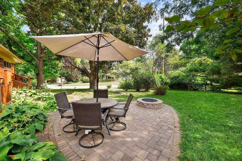 Mid century modern inspired design with huge windows overlooking beautiful perennial garden yard. Sellers finished lower level (2018 with permits), Bathroom renovation (2017), garage storage added (2019), radon mitigation (2020), Prof paved patio w/ fire pit (2021), Prof gutter covers (2024), water heater (2024), Ducts prof cleaned (2025), roof (2001), Furnace (2008), Kitchen remodel (2006), Andersen windows (2011-2014), Marvin windows (kitchen 2011-2014), hard wood flooring, wood burning fireplace, flower paradise w/ dozens of species of trees and flowers! Seller says, "every week is a new story in the yard" about the various gardens. Over a dozen Peony bushes! Close to schools, Nakoma Country Club and Arboretum! Entrance on Whenona. 13 Mins to Epic!