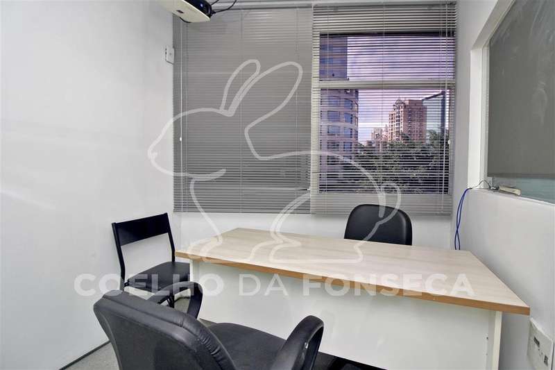 Conjunto comercial em localizacao privilegiada ao lado do metro Vila Olimpia. Mobiliada. Andar inteiro, muito iluminado, dividido em recepcao, copa, sala para servidor, 3 salas reservadas, sala de reuniao envidracada e grande salao com 40 estacoes de trabalho. Piso frio e ar condicionado em todos os ambientes.
