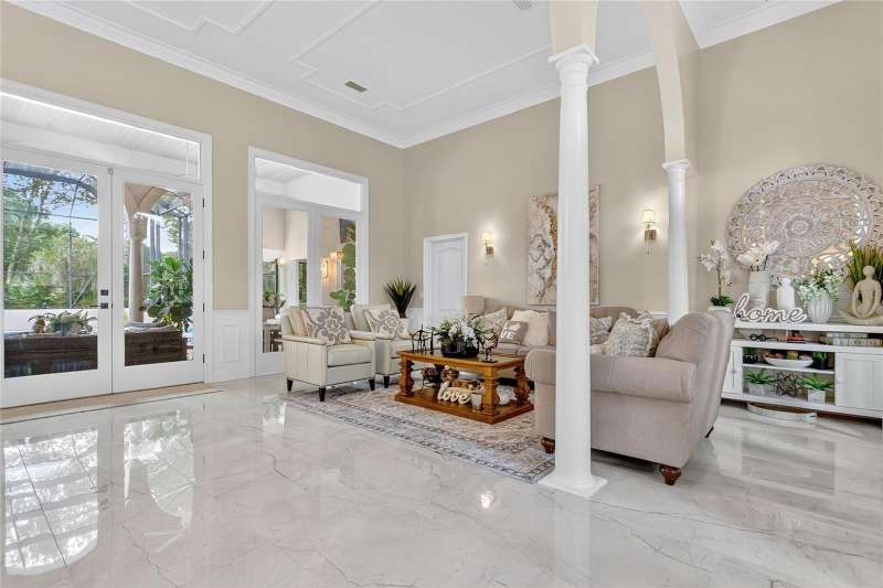 Captivating fully renovated 4 bedroom 4.5 bathroom residence where every inch of this home has been thoughtfully updated, showcasing quality craftsmanship and top-of-the-line finishes throughout. The heart of the home is the brand-new modern kitchen, featuring a massive 10-foot quartz island, custom soft-close cabinetry, wine fridge, and oversized stainless steel appliances. Perfect for cooking, entertaining, or family gatherings, this kitchen sets the tone for the entire home. Brand new hardwood and tile flooring throughout, fresh interior paint, and a seamless open-concept layout that blends the living, dining, and kitchen areas beautifully. Large windows fill the space with natural light, creating an inviting atmosphere. The primary suite is an absolute showpiece—completely reimagined with a custom spa-inspired bathroom featuring double vanities, an oversized walk-in shower, designer tile, and a spacious walk-in closet. Every bathroom in the home has been updated, each its own modern feel. A true highlight is the completely separate mother-in-law suite—featuring its own full kitchen and full bathroom —ideal for extended family, guests, or even rental income potential. Outside you'll have your own personal paradise. The heated pool and spa have been recently re-marcited and a newer pump and spa blower, ensuring years of worry-free enjoyment. The expansive outdoor area features a built-in grill station with sink, perfect for summer cookouts and entertaining, along with a dedicated full pool bath for convenience. Every major update has been completed within the last year and a half, giving this home the feel of a brand-new custom build—without the wait. With luxurious upgrades inside and out, this property truly has it all. Move-in ready, completely redone, and built to impress—this is the one you’ve been waiting for. This is one you simply have to see in person to truly appreciate the quality, design, and attention to detail.