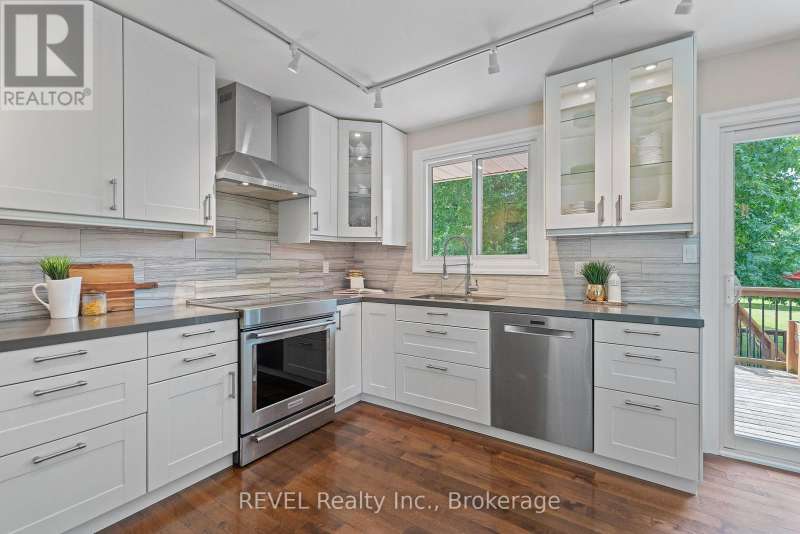Completely move-in ready and ideally situated in the heart of sought-after Niagara-on-the-Lake, 733 Line 1 Road offers a thoughtfully designed layout that suits both growing families and busy professionals. Recent upgrades include a new roof, windows, and front door, along with a stunning kitchen featuring custom cabinetry and stainless-steel appliances. Sun-filled living spaces are enhanced by oversized windows, while warm hickory floors lead to generously sized bedrooms and a fully renovated bathroom.The lower level provides an expansive finished area with a large cold cellar, under-stair storage, and the convenience of a separate entrance perfect for added functionality or future possibilities. Outside, a cedar deck overlooks a half-acre property lined with mature ginkgo, walnut, apple, and cherry trees. A double garage, garden shed, planting room, and mudroom with separate entrance further enhance the homes flexibility, offering potential for an in-law suite or home office.With its blend of modern updates, versatile living spaces, and a prime NOTL address just minutes from shops, wineries, and the lake, 733 Line 1 Road is ready to welcome you home. (id:7434)