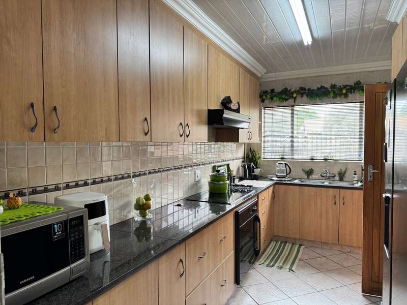 Charming 3-Bedroom Home with Lapa, Swimming Pool & Spacious Yard Welcome to this beautiful and well-maintained 3-bedroom family home, offering the perfect blend of comfort, functionality, and outdoor living. Nestled in a quiet neighborhood in Kirkney, this property boasts a large, lush yard with a beautifully landscaped garden — ideal for families, entertainers, and nature lovers alike. Step inside to find three spacious bedrooms, each filled with natural light and offering ample cupboard space. The home features a full bathroom and an additional guest toilet, a well-appointed newly renovated kitchen, and generous living and dining areas designed for relaxed family living. The whole house have beautiful PVC ceiling. The outdoor area is where this property truly shines. Enjoy year-round entertaining under the covered lapa, overlooking a sparkling swimming pool – perfect for warm summer days. The expansive yard offers plenty of space for kids to play, pets to roam, or even future expansion. Additional features include: • A double garage for secure parking • A 4-vehicle carport for extra vehicles, trailers, or guests • An outside room, ideal as a guest suite, domestic quarters, or home office • A secure, perimeter with a motorized gate for peace of mind This property is move-in ready and offers everything you need for comfortable, stylish living with plenty of space both inside and out.
