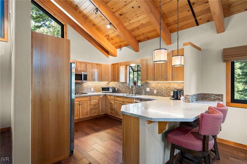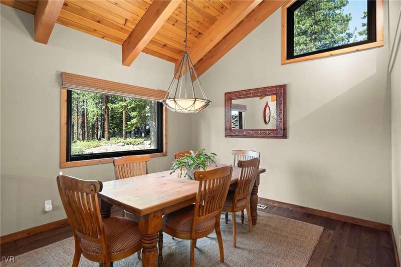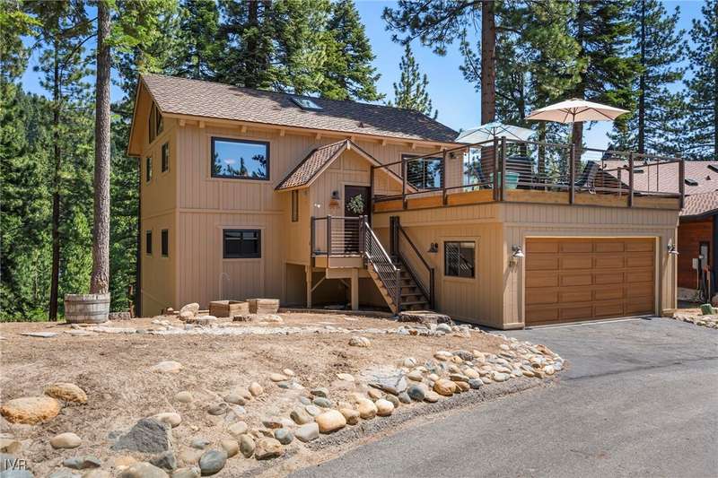 Tucked away at the quiet end of a peaceful cul-de-sac, this enchanting mountain hideaway proves that greatness isn’t measured in square footage. Backing to untouched US Forest Service land and a seasonal stream that sings with the rhythm of the mountains, the setting offers rare privacy and a deep connection to nature’s beauty. Inside, every detail has been thoughtfully curated to blend modern comfort with alpine charm. A beautifully remodeled kitchen and updated baths meet the practical needs of daily life, while upgrades like a newer roof, water heater, and Andersen windows ensure peace of mind. The stone-tiled mudroom sets the tone for life in the Sierra—rugged, refined, and ready for adventure—while rich engineered hickory floors bring warmth and timeless character to the great room and lower level. Whether you're seeking a serene getaway or a full-time retreat, this compact yet captivating home is an ideal base for year-round mountain living—full of heart, style, and soul.