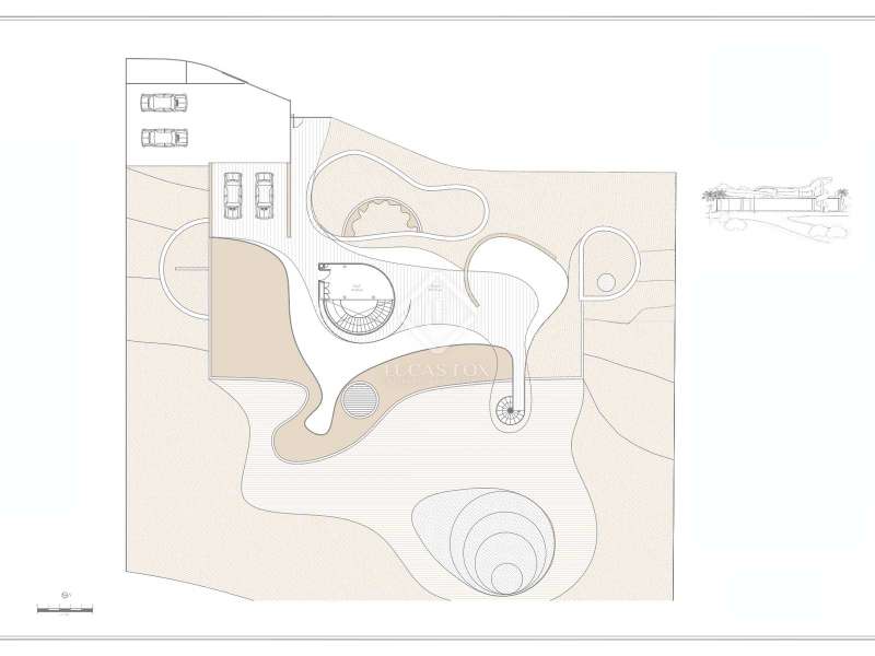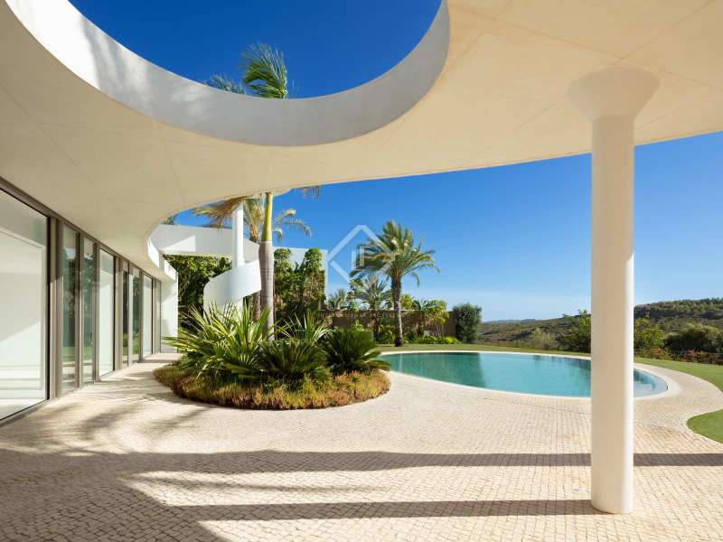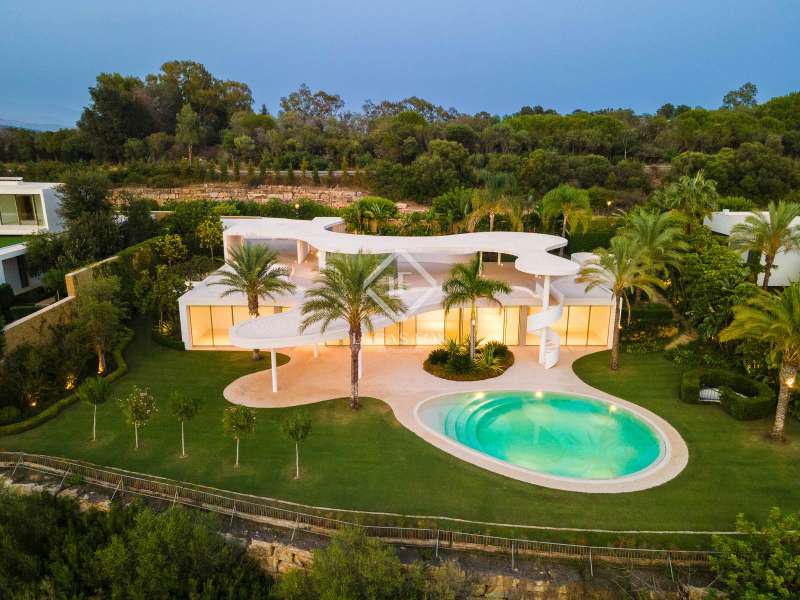 Designed by Vicens & Ramos architects, this futuristic villa seamlessly integrates with its surroundings. The ground floor features all living spaces, while the upper level boasts a dome-like entrance and a spiral staircase. Abundant windows and glass sliding doors blur the boundaries between indoor and outdoor spaces. The villa's garden showcases an oval pool surrounded by a verdant grassy area. With breathtaking views and a prime location in the renowned Finca Cortesin Resort, this exceptional villa offers an extraordinary retreat. Let's take a journey to a home that feels like a daily escape into nature. This lovely villa, nestled among beautiful tropical plants, offers a warm welcome from the moment you arrive, with a covered parking space ready for two cars. The adventure begins on the ground floor. Here, a wrap-around balcony presents stunning 360º views that capture the essence of beauty — mountains, a golf club, and the vast sea; every glance reveals something wonderful. Descending the stairs, which bring a unique charm to the home, you find the heart of the villa. There is a comfortable bedroom and a larger bedroom, both with their own bathrooms, ensuring privacy and comfort. The kitchen extends into a pretty patio, blending indoor comfort with the freshness of the outdoors. On the other side, a spacious living room boasts a large window that frames incredible views, alongside two more rooms for family or guests. The main bedroom enjoys its own little outdoor nook, adding a personal touch of tranquility. Outside, the large garden and a swimming pool that wouldn't be out of place in a holiday brochure make this home truly special. With its unique architecture, this villa isn't just a place to live; it is a retreat, a space where every day is an opportunity to enjoy life a little more.