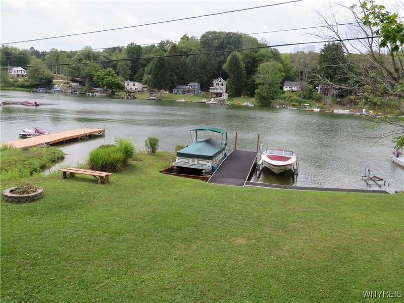 Plenty of room in this 3-bedroom 1 bath cottage that has 50 feet of very desirable gradual lake frontage. Entertain rain or shine in the large 16X24 foot family room with a sliding glass door that leads to the covered deck. The open kitchen, living, dining area hosts a breakfast bar for those on-the-go meals. Best of all the gradual lake frontage is just great for all ages. Easy for those who don't like steps or stairs to their dock and little ones can play and swim in the shallow water. The boat and jet ski hoists will remain. The pontoon boat is available for sale. It's time to start making your family memories here at the lake. Bonus rooms on the second floor are great areas for a computer or craft room, an open play area for the kids and an extra room for storage. Seller will not make any repairs if required by a buyer or lending institution.