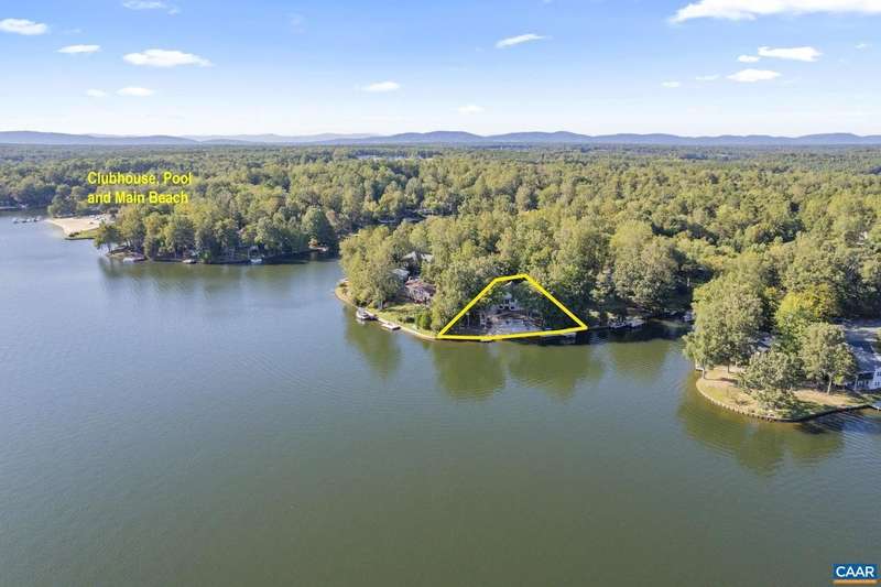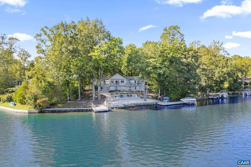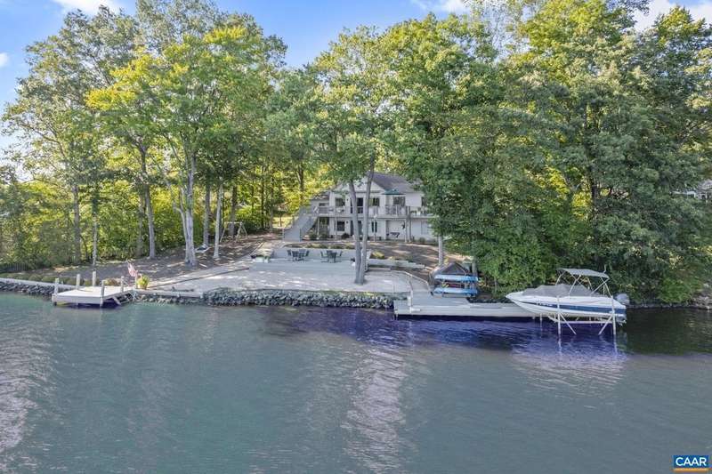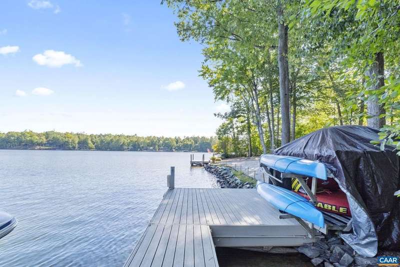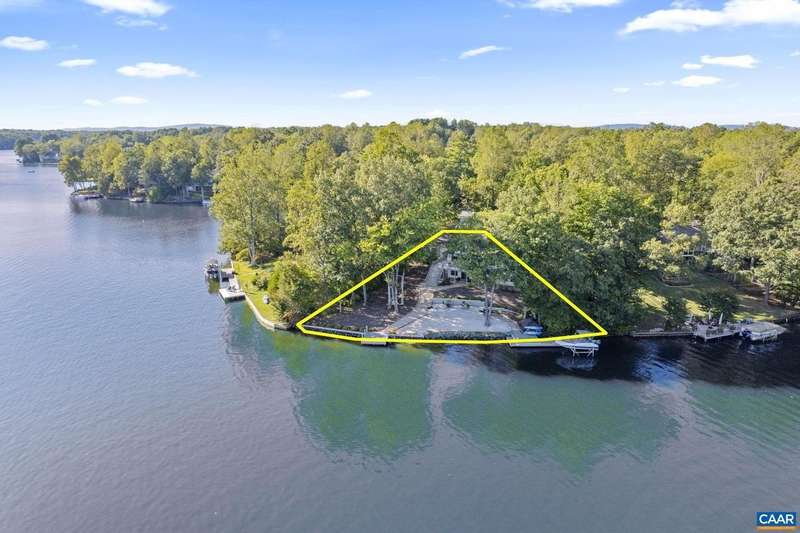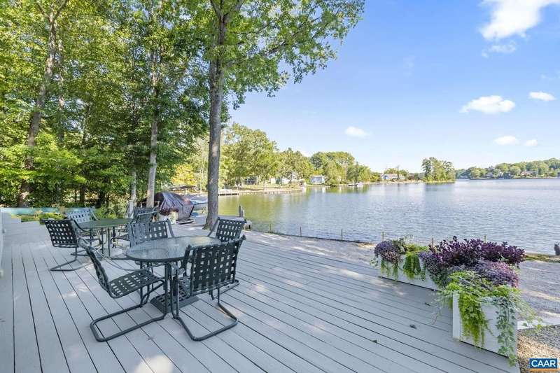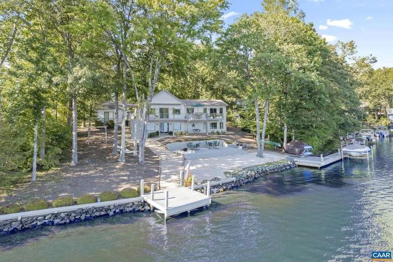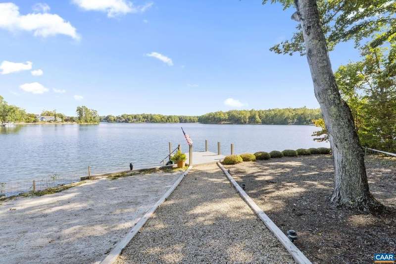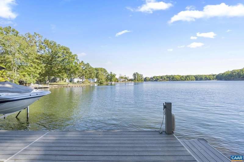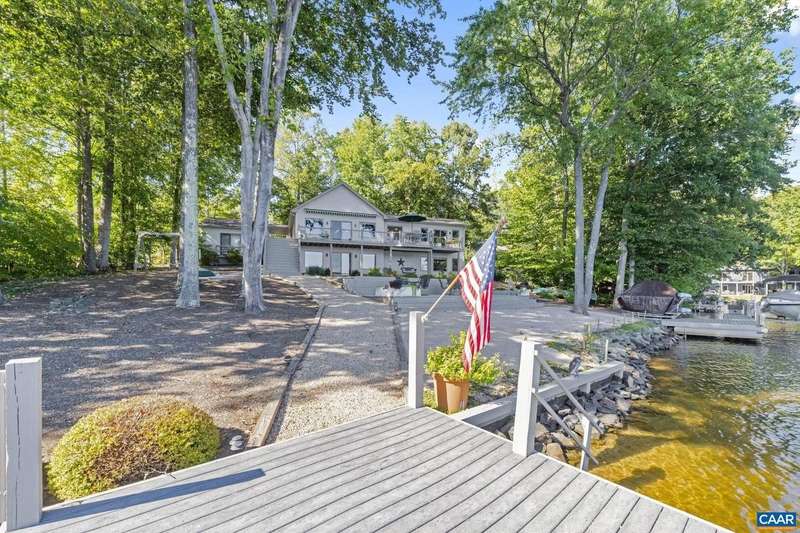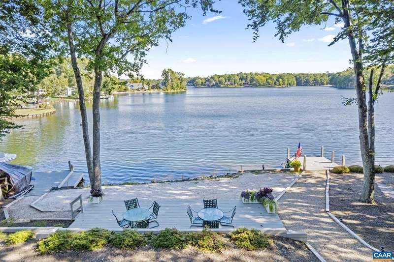 Exceptional lakefront living awaits with this beautifully remodeled and meticulously maintained residence, perfectly situated on 180 feet of pristine open water frontage. Designed for both elegance and enjoyment, the property offers breathtaking moonlit evenings from expansive outdoor living areas, including a spacious main deck, larger lower deck, and professionally landscaped grounds. The private waterfront features two docks, a boat lift, and a sandy beach ideal for recreation and gatherings. With its rare level lot, the walk to the water is effortless, enhancing both convenience and lifestyle. Inside, the home showcases thoughtful upgrades and tasteful finishes throughout, reflecting the highest standards of care and quality. Its prime location provides quick access to the main gate, clubhouse, beach, and playground?offering both privacy and proximity to community amenities. This distinguished property combines prestige, comfort, and unrivaled access to Lake Monticello?s most coveted open water setting.,Granite Counter,Fireplace in Great Room