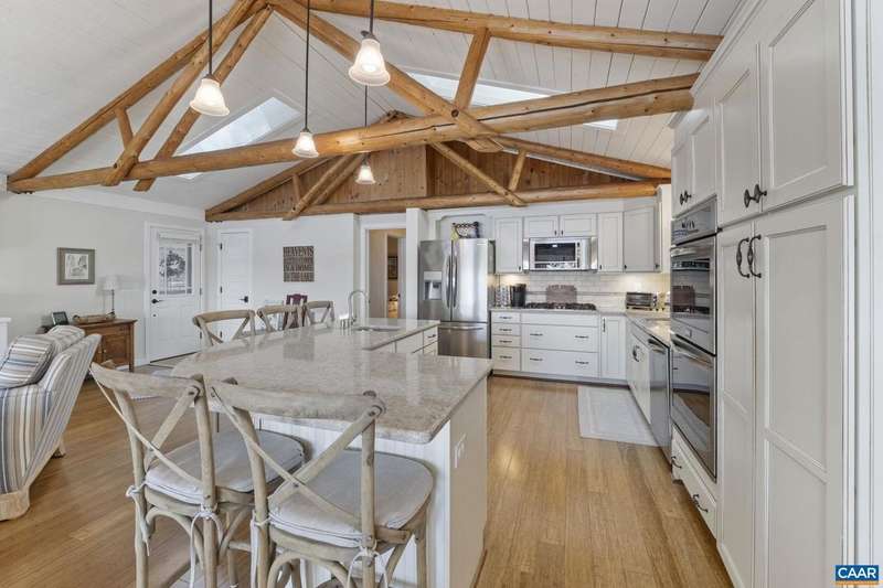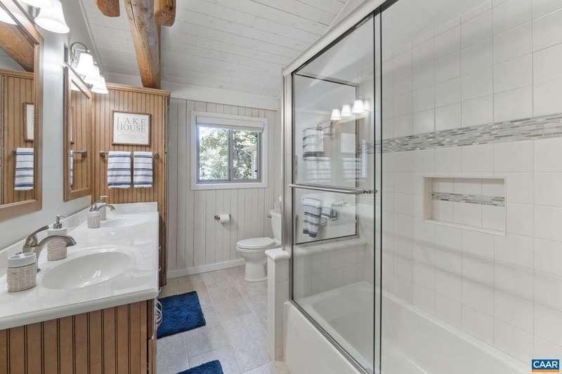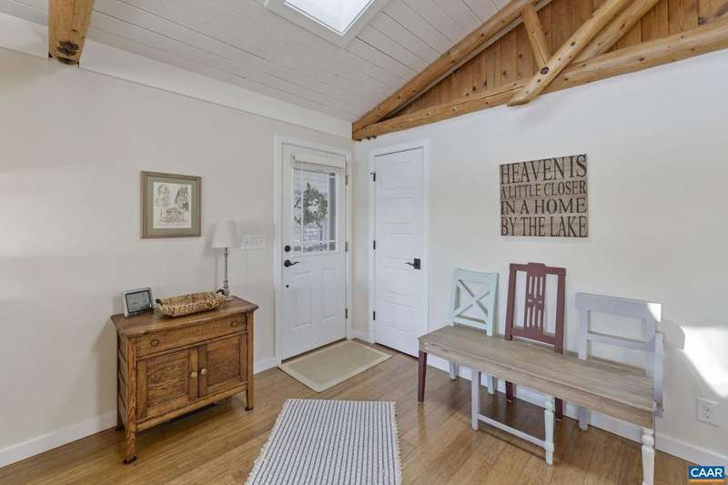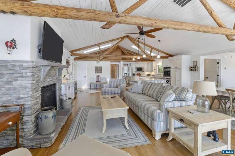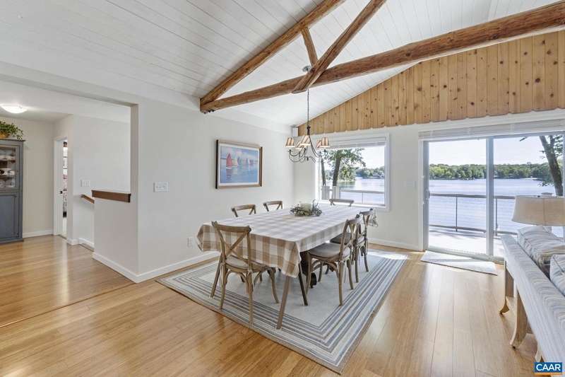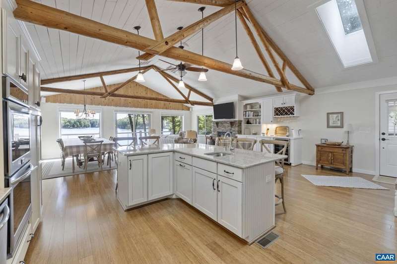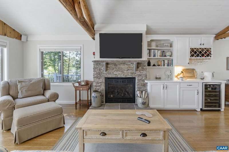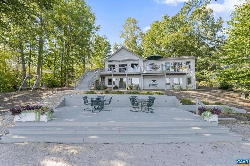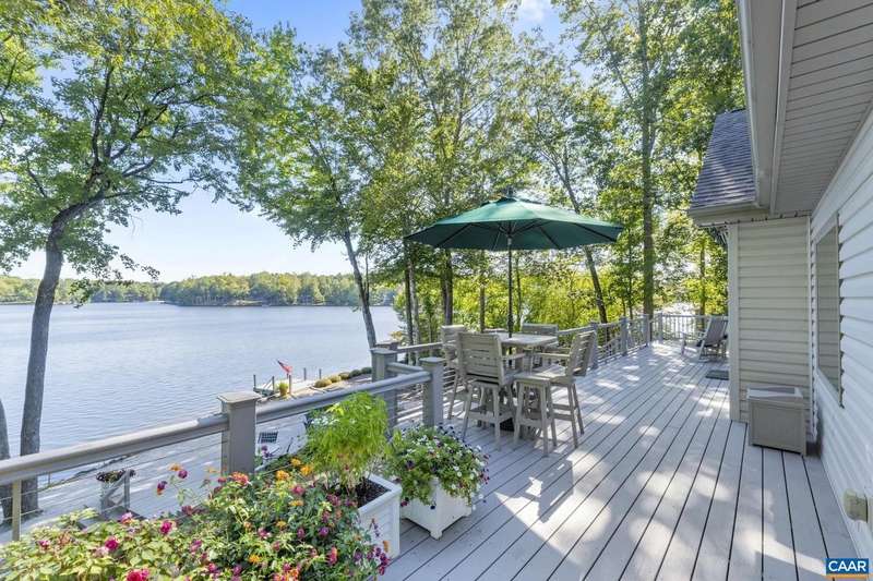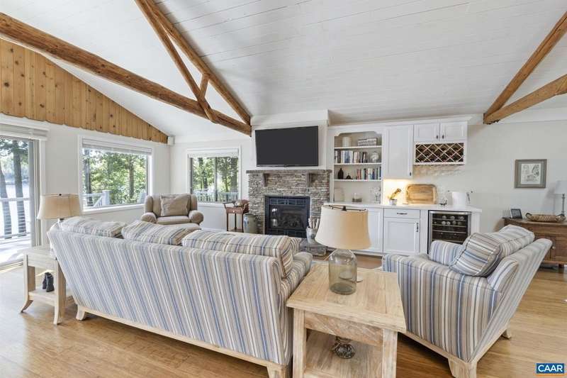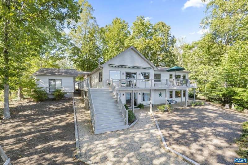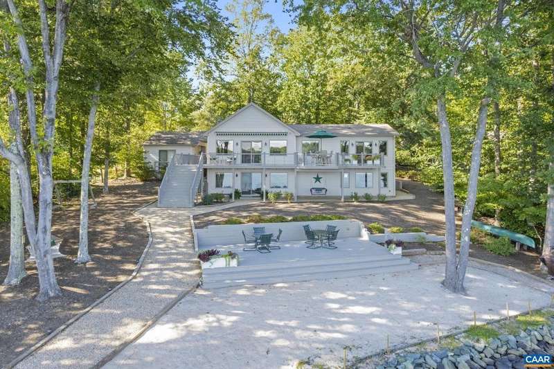 Exceptional lakefront living awaits with this beautifully remodeled and meticulously maintained residence, perfectly situated on 180 feet of pristine open water frontage. Designed for both elegance and enjoyment, the property offers breathtaking moonlit evenings from expansive outdoor living areas, including a spacious main deck, larger lower deck, and professionally landscaped grounds. The private waterfront features two docks, a boat lift, and a sandy beach ideal for recreation and gatherings. With its rare level lot, the walk to the water is effortless, enhancing both convenience and lifestyle. Inside, the home showcases thoughtful upgrades and tasteful finishes throughout, reflecting the highest standards of care and quality. Its prime location provides quick access to the main gate, clubhouse, beach, and playground?offering both privacy and proximity to community amenities. This distinguished property combines prestige, comfort, and unrivaled access to Lake Monticello?s most coveted open water setting.,Granite Counter,Fireplace in Great Room