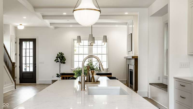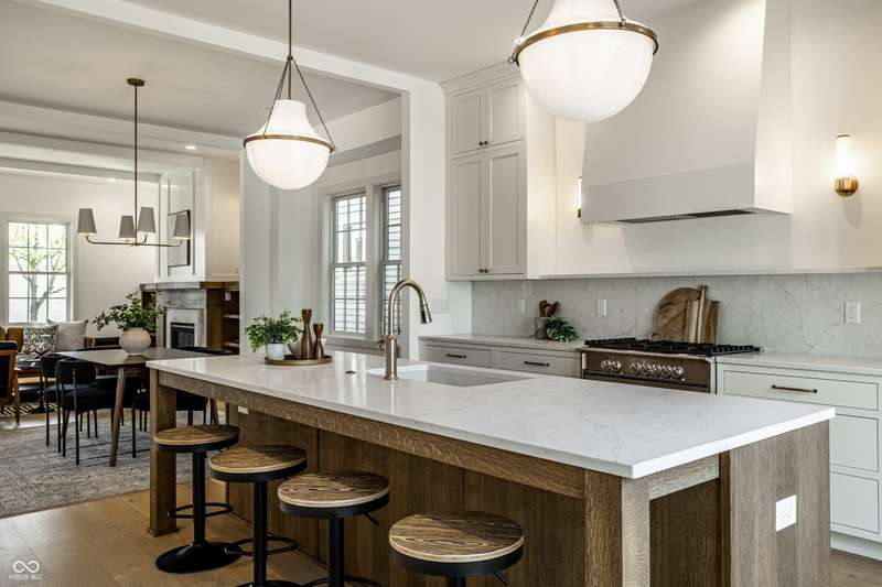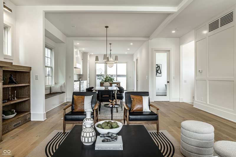 Welcome to this new show-stopper by Compendium Group and Trade Design Studio in the Herron Morton Place neighborhood! Boasting 4 bedrooms, 3.5 bathrooms, main level office and an exercise room, this home offers luxurious living at its finest. Upon entering, you'll be greeted by 10' ceilings and impeccable craftsmanship throughout. The kitchen features custom Amish inset cabinetry, complemented by quartz countertops for a timeless feel. Real marble tile adorns all bathroom floors and bathroom countertops adding a touch of elegance to every space. Detailed custom trim work accentuates the home's sophisticated design. Relax and entertain on the covered front porch or back patio, perfect for enjoying the outdoors in any weather. Park with ease in the 2 car garage. Don't miss your chance to own this exceptional home in one of the most desirable neighborhoods.