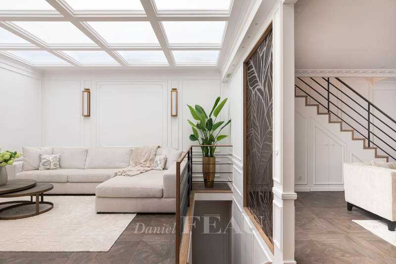 This magnificent early 20th century private mansion located five minutes from the centre of Neuilly-sur-Seine and near the shops and the transport networks has been renovated throughout by a renowned interior decorator. 400 sqm of living space on four floors includes over 85 sqm living/reception rooms, a fully equipped kitchen with dining facilities, a dining room, a terrace, six bedrooms with shower rooms/wc, an immense master suite with a shower room, a study, two dressing room opening onto a balcony, and a fitness room. The basement comprises a sauna, a spa/swimming pool, technical premises, a utility room and a wc. With a 4sqm courtyard. Vertical extension would be possible.