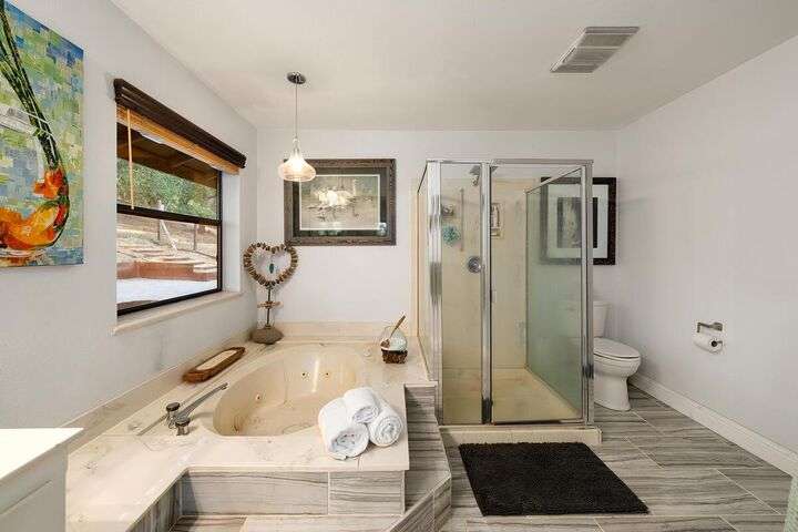 Welcome to 2257 Strap Miner, a serene retreat in the gated community of Auburn Lake Trails. From the moment you step inside, this home offers a calming, Zen-like ambiance. The open-concept living room flows seamlessly to a private patio surrounded by trees, complete with a cozy firepit areaperfect for relaxing or entertaining.The versatile dining area, currently used as a library and art studio, has ample space for hosting gatherings or enjoying quiet meals. The kitchen is well-appointed with generous storage, a charming breakfast nook, and tranquil views of the surrounding landscape.Down the hall are two inviting guest bedrooms, a laundry room, and a beautifully updated guest bathroom. At the end of the hallway, behind custom double doors, awaits the spacious primary suite with direct patio access. Unwind in the jetted tub or soak in the hot tub under the stars.Enjoy the unmatched lifestyle Auburn Lake Trails offersfeaturing equestrian facilities, hiking and riding trails, golf, parks, swimming pools, basketball, pickleball, and more.