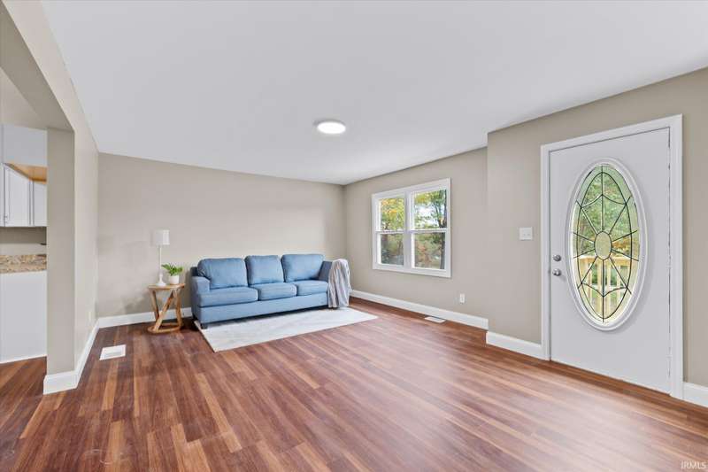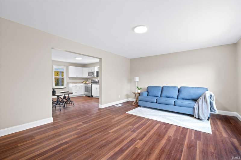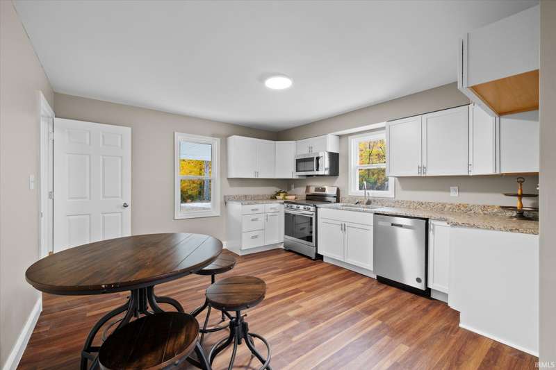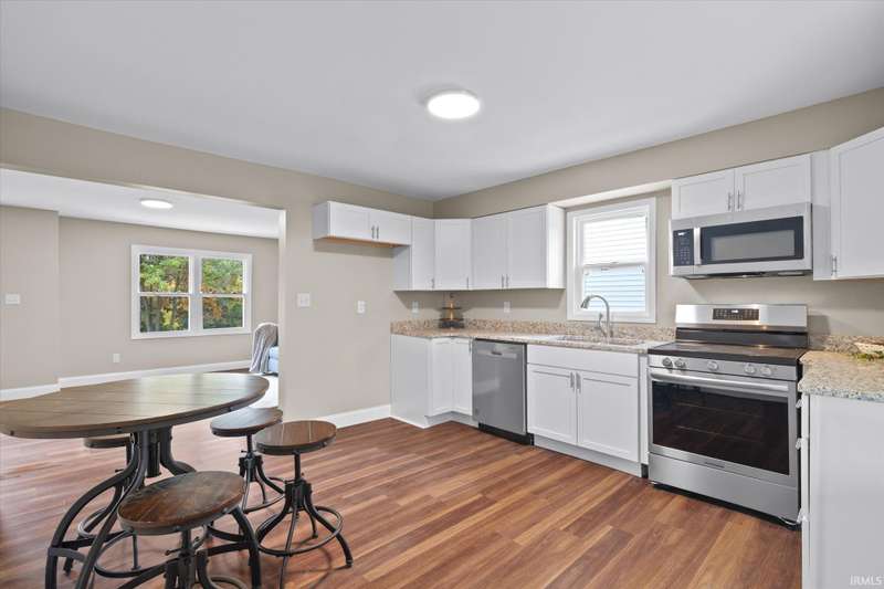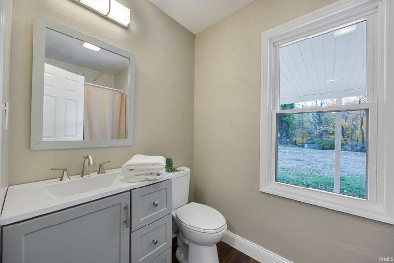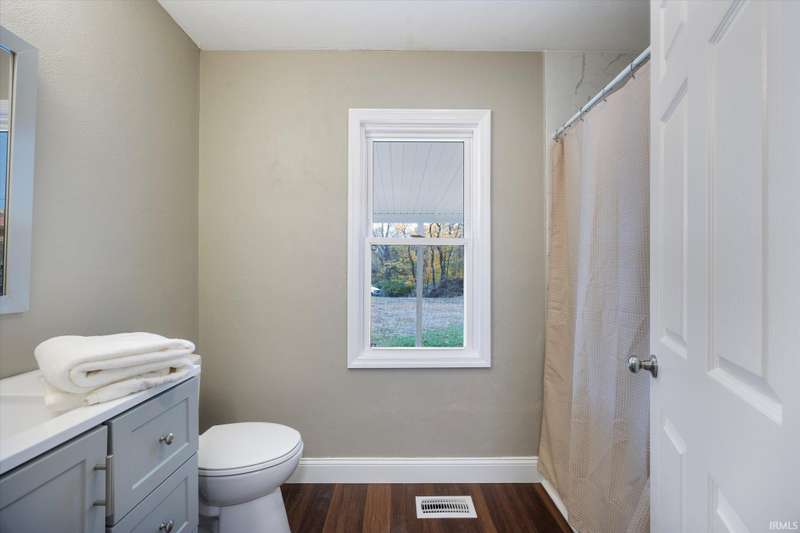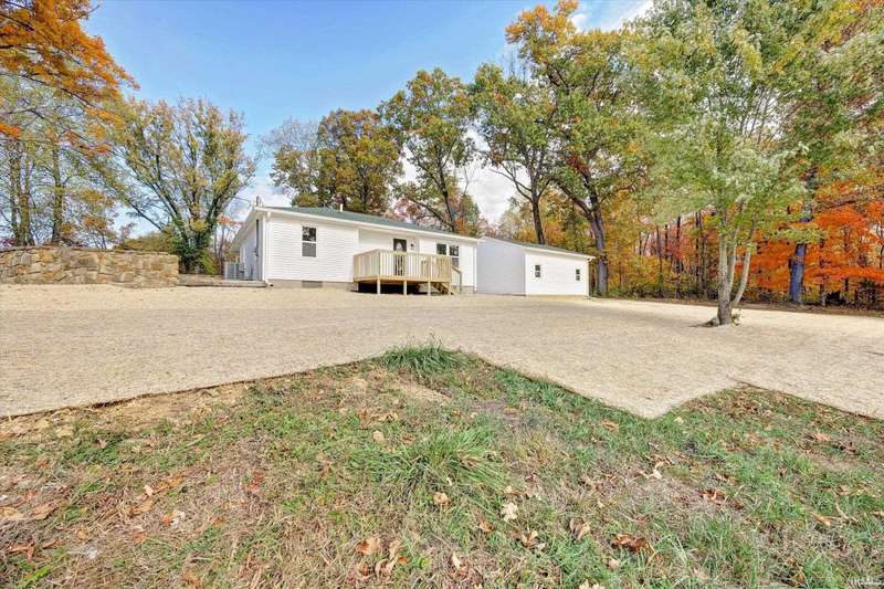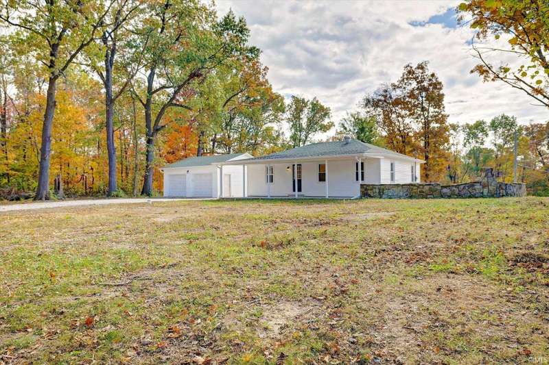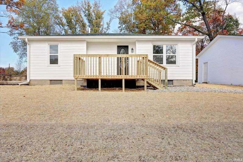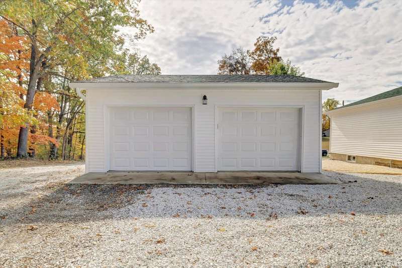 Are you ready to be home for the holidays? WELCOME HOME to this beautifully renovated TWO bedroom, TWO bathroom situated just perfectly on 0.92 acres! This home offers convenience of being close to the highway and town, yet offers plenty of yard space and privacy creating a country feel. As you pull into the driveway, you'll notice a spacious TWO car detached garage situated just steps away from your welcoming front porch and spacious back covered patio. Stroll up the path and step inside your front door to be greeted by an open living room that flows seamlessly into your in eat-in kitchen, which boasts abundant cabinet space. Down the hall you will find a master suite with its own private full bathroom. another spacious full bathroom with step in shower located just between the second bedroom and living room area offering comfort and convenience. From the kitchen, you'll find the entrance to the full basement, providing additional living options or storage space. Head out the back door to a covered porch with a decorative stone wall providing a private outdoor seating area perfect for entertaining friends and family. This outdoor space also features a wood stove/fire pit, adding charm and warmth for gatherings year-round. This home has many updates such as: windows, cabinets, stove, dishwasher, microwave, toilets, flooring, siding, painting, vanities, lighting, and so much more. Home comes complete with a one year HSA home warranty with buyer seven star upgrade. It's ready for you to move in and make it your own!